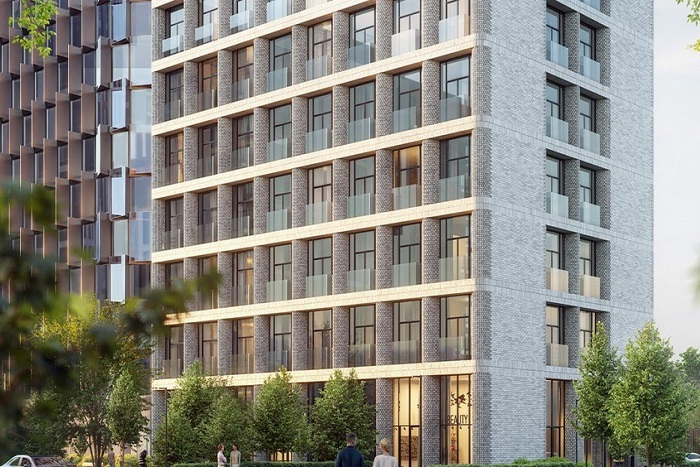 11-этажное здание возводится по авторскому проекту, привлекая внимание оригинальным, необычным фасадом и панорамными окнами — виды из них открываются красивые.