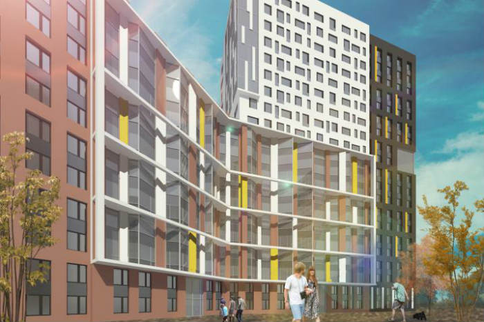 Дома переменной этажности (10-17 этажей) возводятся по современной монолитной технологии. Подчеркнуто современен и внешний облик зданий — строгие четкие пропорции, панорамные окна, яркая, привлекающая внимание отделка фасадов. Каждый корпус индивидуален, скучной «типовой застройки» здесь нет, но здания создают единый, неповторимый архитектурный ансамбль.