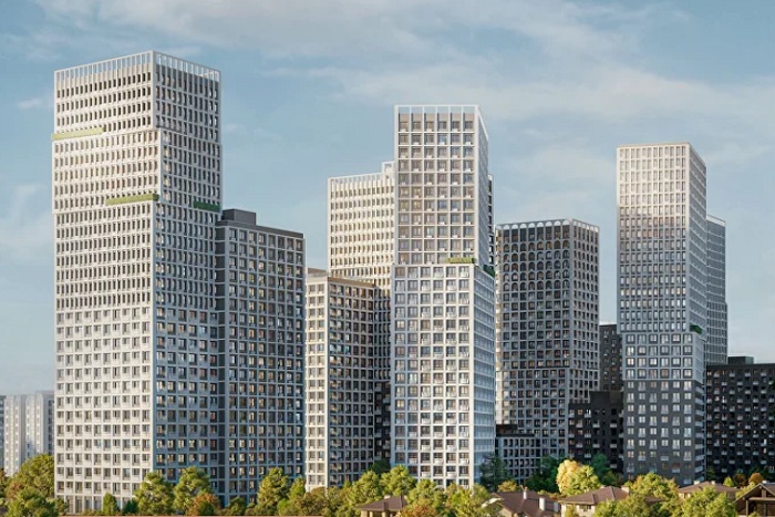 Новый комплекс – семь монолитных корпусов высотой от 13 до 30 этажей. Объемные башни разной высоты смотрятся динамично и современно, светлые фасады дополнят акцентами коричневого оттенка, из панорамных окон откроется вид на реку и парк. Нестандартная форма зданий выделит комплекс на общем фоне, формируя собственный «город в городе».