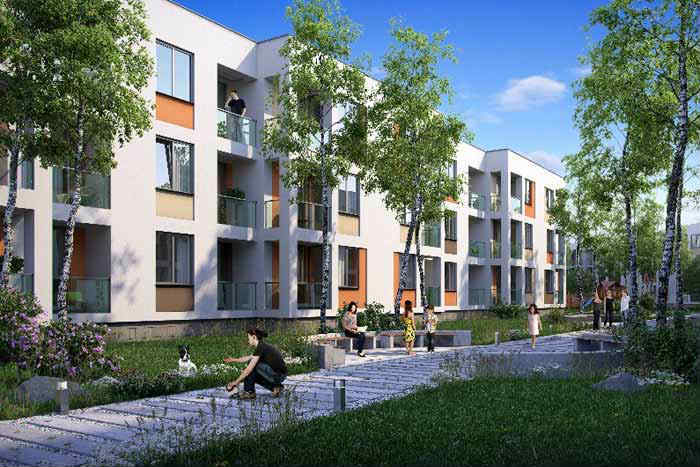Он состоит из 25 трехэтажных зданий, выполненных в едином архитектурном стиле. Для строительства монолитных домов использованы только высококачественные и экологичные современные стройматериалы.