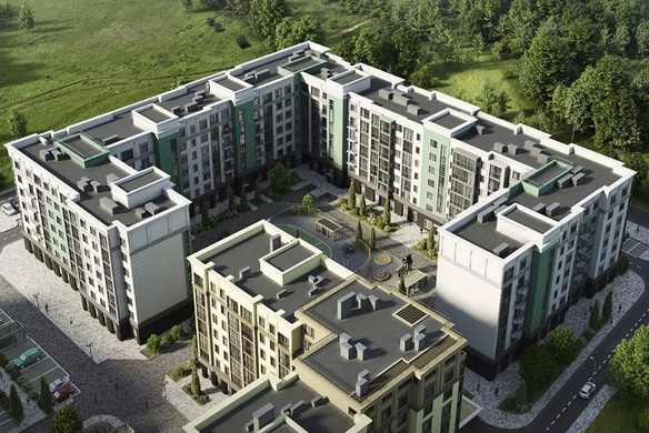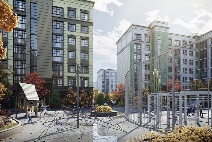 Новый комплекс — три многосекционных монолитно-кирпичных здания высотой в 7-8 этажей — они образуют закрытые просторные дворы-парки, полностью отданные для досуга жителей. Здания возводятся по оригинальному проекту, привлекая внимание стильными фасадами с панорамным остеклением. Просторные входные группы расположены на уровне земли.