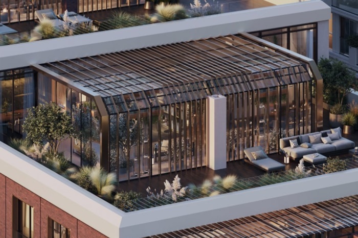 Великолепные атриумы, пропитанные солнечным светом, стали основой дизайна просторных холлов. Застройщик в рамках своей концепции решил разместить все входы на уровне тротуаров, чтобы создать доступную среду. Здесь каждый посетитель найдет уютные уголки ожидания и уютные ресепшн-стойки.