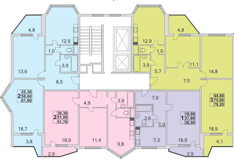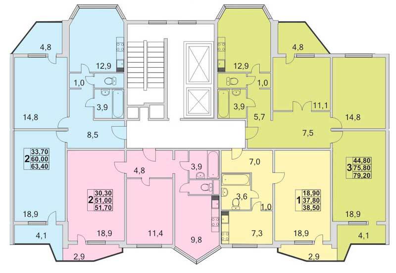 ЖК "Новый" – это 1-3-комнатные апартаменты площадью 39-79 кв.м. В них предусмотрена организация просторной кухни (до 13 кв.м), установка отечественных радиаторов и пластиковых стеклопакетов. Высота потолков – 2,7 м.
