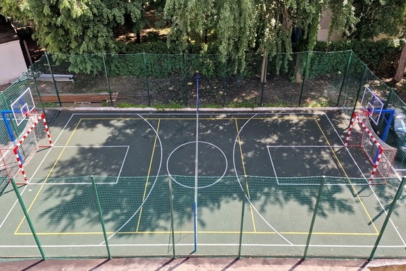 Территория закрыта от посторонних и находится под охраной. Во внутреннем дворе установлена спортивная площадка. Для автомобилей жителей предусмотрены наземные парковочные места.