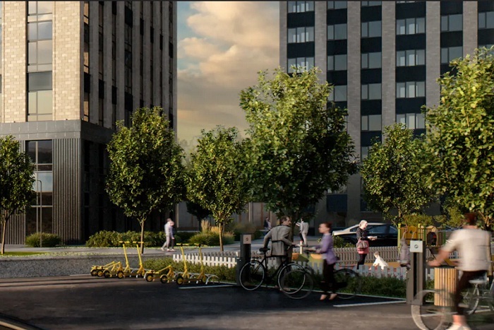 Первые этажи домов отведены под объекты собственной инфраструктуры — там откроются магазины, кафе, сервисные службы. В подземном уровне оборудуется паркинг. Закрытый внутренний двор озеленяется и благоустраивается для отдыха жителей.