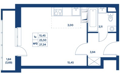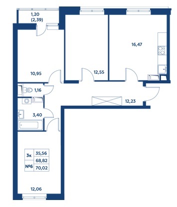 Высота потолков:2.7