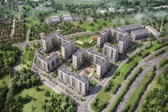 Огромная, в 137 гектар, территория застраивается монолитными корпусами средней высотности, 10-14 этажей. Дома выдержаны в ярком современности стиле, привлекая внимание стильными решениями фасадов — двух одинаковых здесь не будет, дизайнерскими входными группами с просторными холлами, удобными подъездами, расположенными на уровне земли. Всего планируется построить 42 многосекционных корпуса.