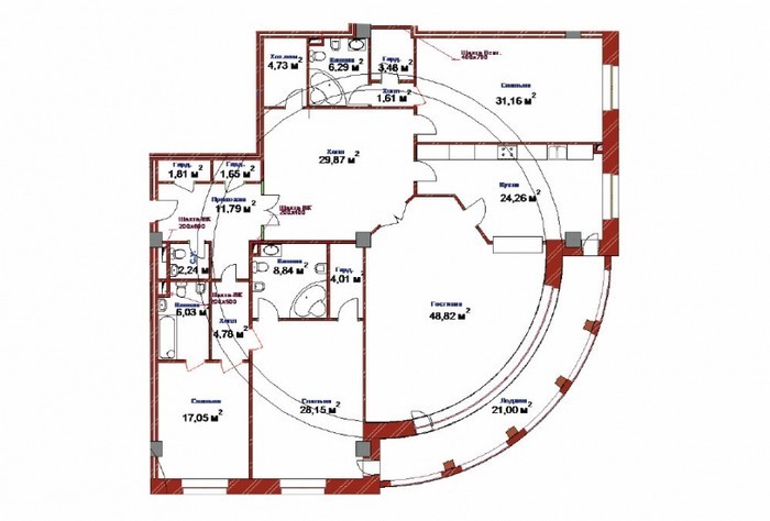 Минимальная площадь квартир свободной планировки составляет 80 квадратных метров, максимальная – 420. Все квартиры оборудованы системой «умный дом», а также оснащены спутниковым телевидением и интернетом.