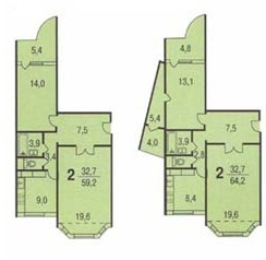 Всего в комплексе 1392 квартиры. Выбор планировочных решений не слишком велик, площади начинаются от 41 кв. м. Интересны двух- и трехкомнатные квартиры с выходом на несколько сторон света с двумя лоджиями необычной конфигурации. Общее - просторные кухни, наличие дополнительных помещений, которые можно использовать как гардеробные или кладовые, раздельные санузлы.