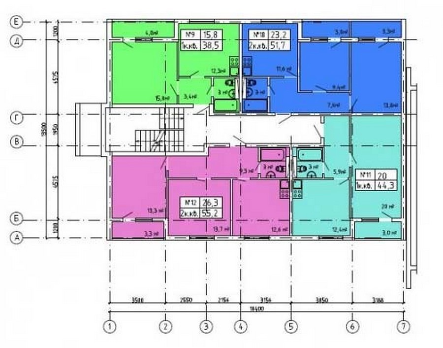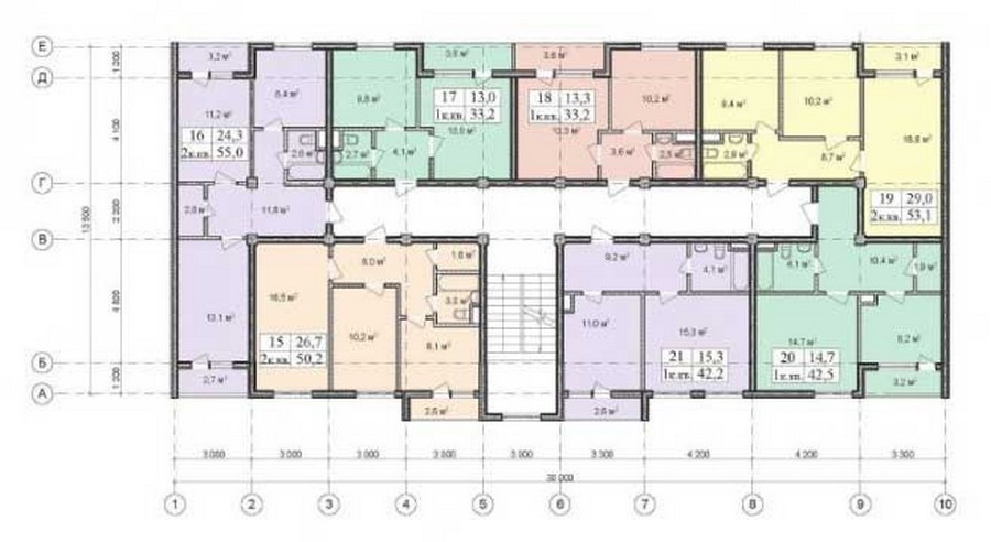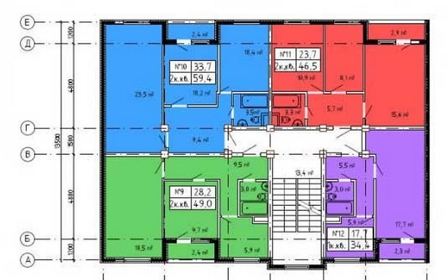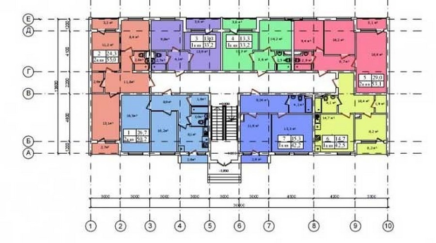 На каждом этаже здания секции Г расположено по шесть квартир: