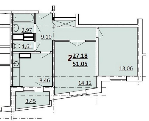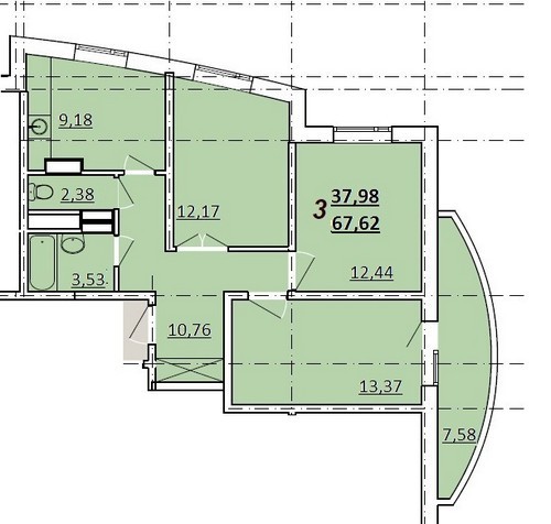 Минимальная площадь однокомнатных квартир равна 23 кв.метрам, максимальная – 44 . Самая скромная двухкомнатная квартира занимает 51,7 кв метра, самая просторная – 70. Трехкомнатные квартиры занимают площадь 77 кв. метров.