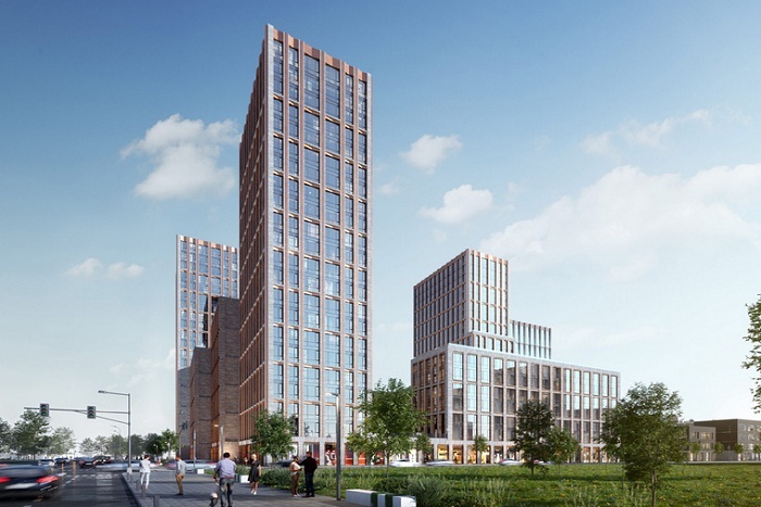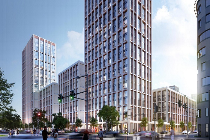 Строительство включает несколько этапов. В рамках первой очереди возводится разновысотное (от 7 до 22 этажей) девятисекционное здание и односекционный дом — они будут объединены общим одноэтажным стилобатом, в котором оборудуется паркинг. Площадь всей недвижимости — жилой и коммерческой, составляет 112000 кв. метров.