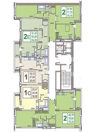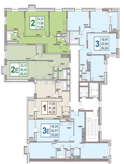 На каждом этаже располагается от 5 до 7 квартир. Застройщик предусмотрел возможность объединения, поскольку имеется конкретный спрос на квартиры большой площади.