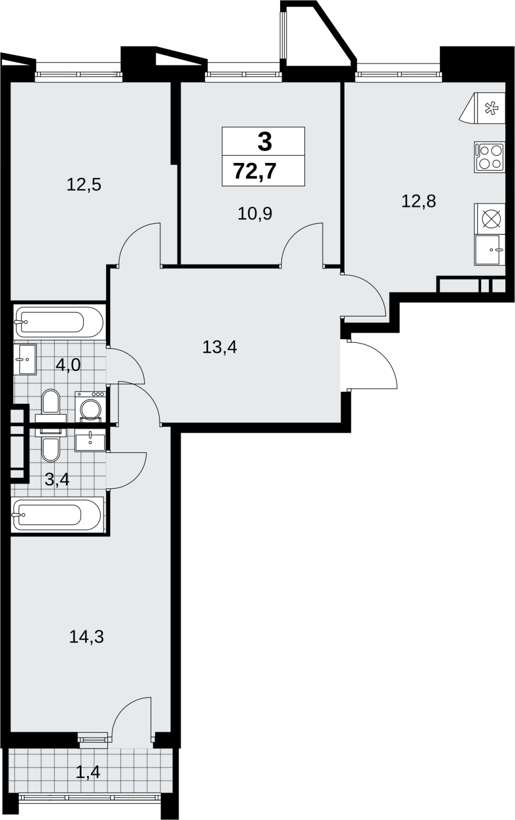 3-комн. квартира с отделкой в новом ЖК, метро рядом Продается 3-комн. квартира площадью 72.7 кв.м., с отделкой, на 10 этаже из 17 в жилом комплексе комфорт-класса "Прокшино". Квартира - распашонка, без проходных комнат, окна однорвеменно смотрят во двop и на yлицy. В квартире один балкон, два совмещенных санузла. Высота потолков 2.95 м. Корпус 7.1.2 в ЖК "Прокшино", в котором расположена квартира, будет построен в 2027 году. Дом монолитный, в корпусе 3 подъезда, есть 1 пассажирский и 1 грузовой лифт. ЖК "Прокшино" - новый проект от надежного застройщика А101. Жилой район «Прокшино» строится в 7,6 км от МКАД. Высокую транспортную доступность обеспечивают близко расположенная станция метро и два крупных шоссе, до которых легко доехать за 5 минут по новой скоростной автотрассе Солнцево – Бутово – Варшавское шоссе (СБВ). В жилом районе «Прокшино» будет всё, чтобы жить счастливой, насыщенной и яркой жизнью. Основная идея района «Прокшино» – создание жилого пространства по принципу Live-Work-Shop-Play (Живи-Работай-Делай покупки-Отдыхай). До ближайшей станции метро «Прокшино» можно добраться пешком всего за 10 минут. Также за 4-10 минут на общественном транспорте можно доехать до станций метро «Филатов луг», «Саларьево», «Румянцево» и «Теплый стан». (AQID02488939)