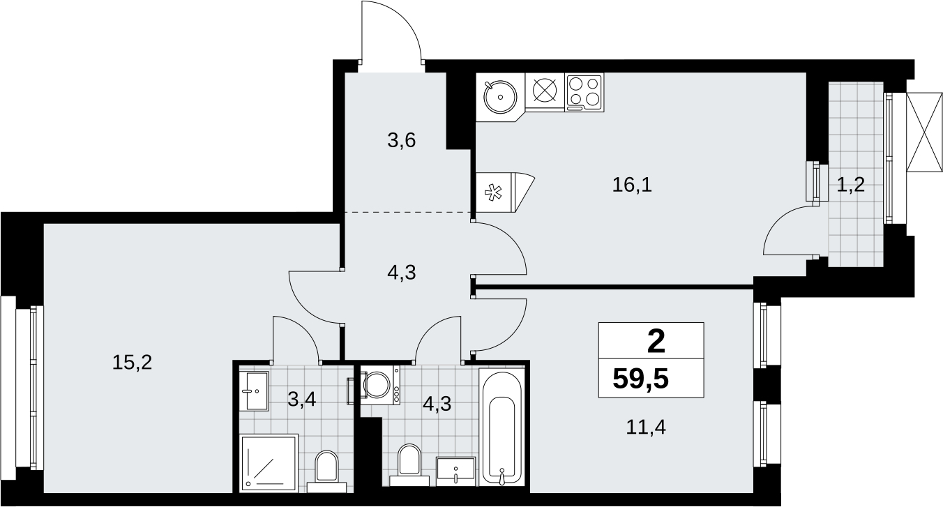 2-комн. квартира в новом жилом комплексе, рядом с метро Просторная 2-комн. квартира в ЖК "Прокшино" на 12 этаже. Квартира без отделки, после оформления собственности можно делать ремонт. Общая площадь: 59.5 кв.м., жилая: 26.6 кв.м., площадь просторной кухни-столовой: 16.1 кв.м. Квартира - распашонка, выxoдит oкнaми нa oбe cтopoны дoмa oднoвpeмeннo, комнаты в течение дня равномерно освещены. В квартире один балкон, два совмещенных санузла. Высота потолков 2.95 м. Эта квартира предлагается без отделки. Будут установлены стеклопакеты с повышенной тепло- и шумоизоляцией, в квартиру заведены все коммуникации. Вы сможете в полном объеме реализовать ваши идеи обустройства вашего комфортного дома. Дом монолитный, черырехподъездный, переменной этажности, от 10 до 14 этажей. Квартира находится во 2-й секции высотой 14 этажей в корпусе 9.2. На этаже 5 квартир. В подъезде 1 пассажирский и 1 грузовой лифт. Начало строительства - 3 квартал 2025 года. Окончание строительства - 4 квартал 2027 года. Оформление сделки по договору долевого участия. Артикул квартиры по базе застройщика 58К-9.2-188. В шаговой доступности от жилого комплекса находятся станции метро (расстояние по прямой): «Филатов луг» (1.4 км), «Прокшино» (1.7 км), также недалеко от этого корпуса расположены станции метро: «Саларьево», «Румянцево», «Теплый стан». ПРЕДЛОЖЕНИЯ ОТ ЗАСТРОЙЩИКА В ОКТЯБРЕ 2025: Ипотека от 13,9 % для всех! На весь срок. "Семейная ипотека" вернулась. Ставка от 3,5 % на весь срок! Без удорожания! Выгодное ипотечное комбо: Ипотека от 2200 р./мес. и от 6 % после рождения ребёнка! Ипотека для всех "Держи пять!" - ставка 5 % на 2 года! *более подробную информацию по скидкам и акциям уточняйте в отделе продаж ЖК «Прокшино» расположен в 7,6 км от МКАД в Новой Москве. В 8 минутах пешком находится станция метро "Прокшино" быстрой и комфортной красной линии метро. Высокую транспортную доступность обеспечивают и два крупных шоссе, до которых легко доехать за 5 минут по новой скоростной автотрассе Солнцево – Бутово – Варшавское шоссе. Жилой комплекс "Прокшино" входит в кластер Прокшино. В районе появятся дома комфорт и бизнес-класса с подземным паркингом, закрытыми благоустроенными дворами без машин, местами для активного и созерцательного отдыха, магазинами, бытовыми сервисами и другими коммерческими объектами. Рядом пруд с собственной набережной и городской парк «Хованская дубрава». Для маленьких жителей построят детские сады, образовательный комплекс. (AQID02508511)