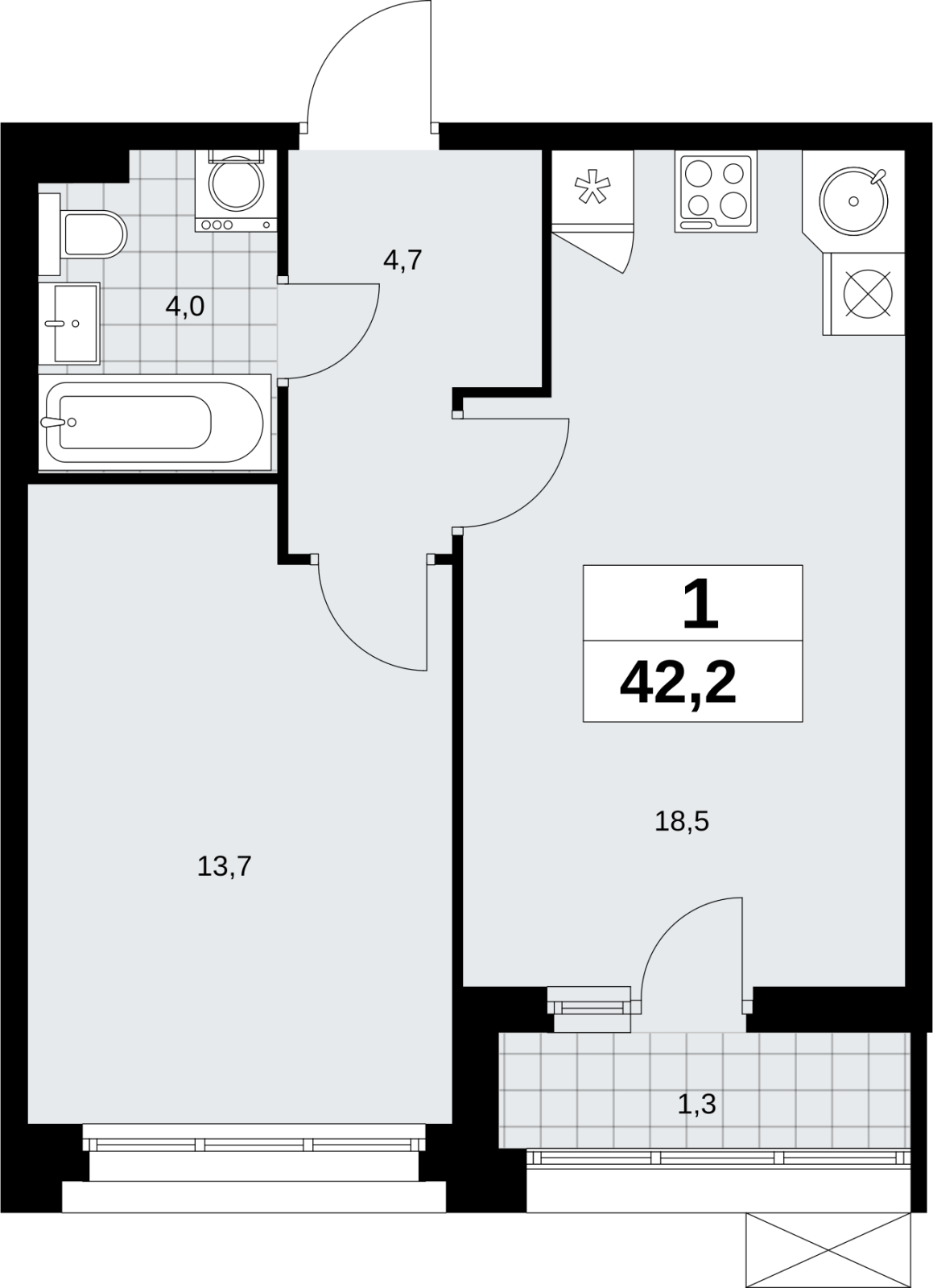 1-комн. квартира в новом жилом комплексе, у метро Продается 1-комн. квартира от застройщика в ЖК "Прокшино" на 4 этаже. Квартира без отделки, новый владелец может сделать ремонт по индивидуальному проекту. Общая площадь: 42.2 кв.м., жилая: 13.7 кв.м., площадь просторной кухни-столовой: 18.5 кв.м. Все окна выходят на одну сторону. В квартире одна лоджия, один совмещенный санузел. Высота потолков 2.95 м. Эта квартира предлагается без отделки. Будут установлены стеклопакеты с повышенной тепло- и шумоизоляцией, в квартиру заведены все коммуникации. Вы сможете в полном объеме реализовать ваши идеи обустройства вашего комфортного дома. Дом монолитный, черырехподъездный, переменной этажности, от 10 до 14 этажей. Квартира находится в 3-й секции высотой 14 этажей в корпусе 9.2. На этаже 4 квартиры. В подъезде 1 пассажирский и 1 грузовой лифт. Начало строительства - 3 квартал 2025 года. Окончание строительства - 4 квартал 2027 года. Оформление сделки по договору долевого участия. Артикул квартиры по базе застройщика 58К-9.2-206. В шаговой доступности от жилого комплекса находятся станции метро (расстояние по прямой): «Филатов луг» (1.4 км), «Прокшино» (1.7 км), также недалеко от этого корпуса находятся станции метро: «Саларьево», «Румянцево», «Теплый стан». ПРЕДЛОЖЕНИЯ ОТ ЗАСТРОЙЩИКА В ОКТЯБРЕ 2025: Ипотека от 13,9 % для всех! На весь срок. "Семейная ипотека" вернулась. Ставка от 3,5 % на весь срок! Без удорожания! Выгодное ипотечное комбо: Ипотека от 2200 р./мес. и от 6 % после рождения ребёнка! Ипотека для всех "Держи пять!" - ставка 5 % на 2 года! *более подробную информацию по скидкам и акциям уточняйте в отделе продаж ЖК «Прокшино» расположен в 7,6 км от МКАД в Новой Москве. В 8 минутах пешком находится станция метро "Прокшино" быстрой и комфортной красной линии метро. Высокую транспортную доступность обеспечивают и два крупных шоссе, до которых легко доехать за 5 минут по новой скоростной автотрассе Солнцево – Бутово – Варшавское шоссе. Жилой комплекс "Прокшино" входит в кластер Прокшино. В районе появятся дома комфорт и бизнес-класса с подземным паркингом, закрытыми благоустроенными дворами без машин, местами для активного и созерцательного отдыха, магазинами, бытовыми сервисами и другими коммерческими объектами. Рядом пруд с собственной набережной и городской парк «Хованская дубрава». Для маленьких жителей построят детские сады, образовательный комплекс. (AQID02508525)