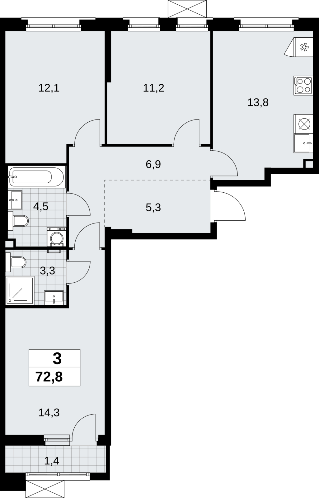 3-комнатная квартира в новостройке, метро рядом Продается 3-комн. квартира в ЖК "Прокшино" на 2 этаже. Квартира без отделки, полностью готова к чистовой отделке и дальнейшему ремонту. Общая площадь: 72.8 кв.м., жилая: 37.2 кв.м., площадь просторной кухни-столовой: 14.2 кв.м. Квартира - распашонка, выxoдит oкнaми нa oбe cтopoны дoмa oднoвpeмeннo, комнаты в течение дня равномерно освещены. В квартире один балкон, два совмещенных санузла. Высота потолков 2.95 м. Эта квартира предлагается без отделки. Будут установлены стеклопакеты с повышенной тепло- и шумоизоляцией, в квартиру заведены все коммуникации. Вы сможете в полном объеме реализовать ваши идеи обустройства вашего комфортного дома. Дом монолитный, черырехподъездный, переменной этажности, от 10 до 14 этажей. Квартира находится в 4-й секции высотой 10 этажей в корпусе 9.2. На этаже 5 квартир. В подъезде 1 пассажирский и 1 грузовой лифт. Начало строительства - 3 квартал 2025 года. Окончание строительства - 4 квартал 2027 года. Оформление сделки по договору долевого участия. Артикул квартиры по базе застройщика 58К-9.2-249. В шаговой доступности от жилого комплекса находятся станции метро (расстояние по прямой): «Филатов луг» (1.4 км), «Прокшино» (1.7 км), также недалеко от этого корпуса находятся станции метро: «Саларьево», «Румянцево», «Теплый стан». ПРЕДЛОЖЕНИЯ ОТ ЗАСТРОЙЩИКА В ОКТЯБРЕ 2025: Ипотека от 13,9 % для всех! На весь срок. "Семейная ипотека" вернулась. Ставка от 3,5 % на весь срок! Без удорожания! Выгодное ипотечное комбо: Ипотека от 2200 р./мес. и от 6 % после рождения ребёнка! Ипотека для всех "Держи пять!" - ставка 5 % на 2 года! *более подробную информацию по скидкам и акциям уточняйте в отделе продаж ЖК «Прокшино» расположен в 7,6 км от МКАД в Новой Москве. В 8 минутах пешком находится станция метро "Прокшино" быстрой и комфортной красной линии метро. Высокую транспортную доступность обеспечивают и два крупных шоссе, до которых легко доехать за 5 минут по новой скоростной автотрассе Солнцево – Бутово – Варшавское шоссе. Жилой комплекс "Прокшино" входит в кластер Прокшино. В районе появятся дома комфорт и бизнес-класса с подземным паркингом, закрытыми благоустроенными дворами без машин, местами для активного и созерцательного отдыха, магазинами, бытовыми сервисами и другими коммерческими объектами. Рядом пруд с собственной набережной и городской парк «Хованская дубрава». Для маленьких жителей построят детские сады, образовательный комплекс. (AQID02508567)