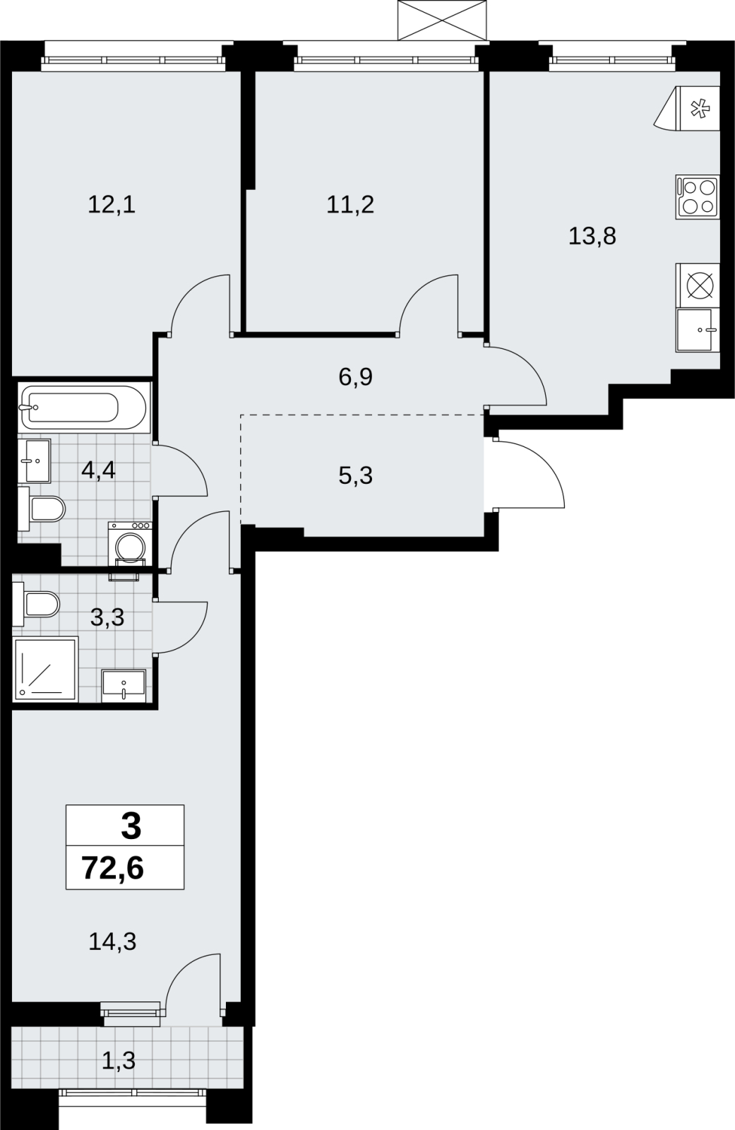 Трехкомнатная квартира в новом жилом комплексе, метро рядом Просторная 3-комн. квартира в ЖК "Прокшино" на 10 этаже. Квартира без отделки, после выдачи ключей можно делать ремонт. Общая площадь: 72.6 кв.м., жилая: 37.6 кв.м., площадь просторной кухни-столовой: 13.8 кв.м. Квартира - распашонка, без проходных комнат, окна выходят на paзные стороны дома. В квартире один балкон, два совмещенных санузла. Высота потолков 2.95 м. Эта квартира предлагается без отделки. Будут установлены стеклопакеты с повышенной тепло- и шумоизоляцией, в квартиру заведены все коммуникации. Вы сможете в полном объеме реализовать ваши идеи обустройства вашего комфортного дома. Дом монолитный, черырехподъездный, переменной этажности, от 10 до 14 этажей. Квартира находится в 4-й секции высотой 10 этажей в корпусе 9.2. На этаже 5 квартир. В подъезде 1 пассажирский и 1 грузовой лифт. Начало строительства - 3 квартал 2025 года. Окончание строительства - 4 квартал 2027 года. Оформление сделки по договору долевого участия. Артикул квартиры по базе застройщика 58К-9.2-285. В шаговой доступности от жилого комплекса находятся станции метро (расстояние по прямой): «Филатов луг» (1.4 км), «Прокшино» (1.7 км), также недалеко от этого корпуса расположены станции метро: «Саларьево», «Румянцево», «Теплый стан». ПРЕДЛОЖЕНИЯ ОТ ЗАСТРОЙЩИКА В ОКТЯБРЕ 2025: Ипотека от 13,9 % для всех! На весь срок. "Семейная ипотека" вернулась. Ставка от 3,5 % на весь срок! Без удорожания! Выгодное ипотечное комбо: Ипотека от 2200 р./мес. и от 6 % после рождения ребёнка! Ипотека для всех "Держи пять!" - ставка 5 % на 2 года! *более подробную информацию по скидкам и акциям уточняйте в отделе продаж ЖК «Прокшино» расположен в 7,6 км от МКАД в Новой Москве. В 8 минутах пешком находится станция метро "Прокшино" быстрой и комфортной красной линии метро. Высокую транспортную доступность обеспечивают и два крупных шоссе, до которых легко доехать за 5 минут по новой скоростной автотрассе Солнцево – Бутово – Варшавское шоссе. Жилой комплекс "Прокшино" входит в кластер Прокшино. В районе появятся дома комфорт и бизнес-класса с подземным паркингом, закрытыми благоустроенными дворами без машин, местами для активного и созерцательного отдыха, магазинами, бытовыми сервисами и другими коммерческими объектами. Рядом пруд с собственной набережной и городской парк «Хованская дубрава». Для маленьких жителей построят детские сады, образовательный комплекс. (AQID02508602)