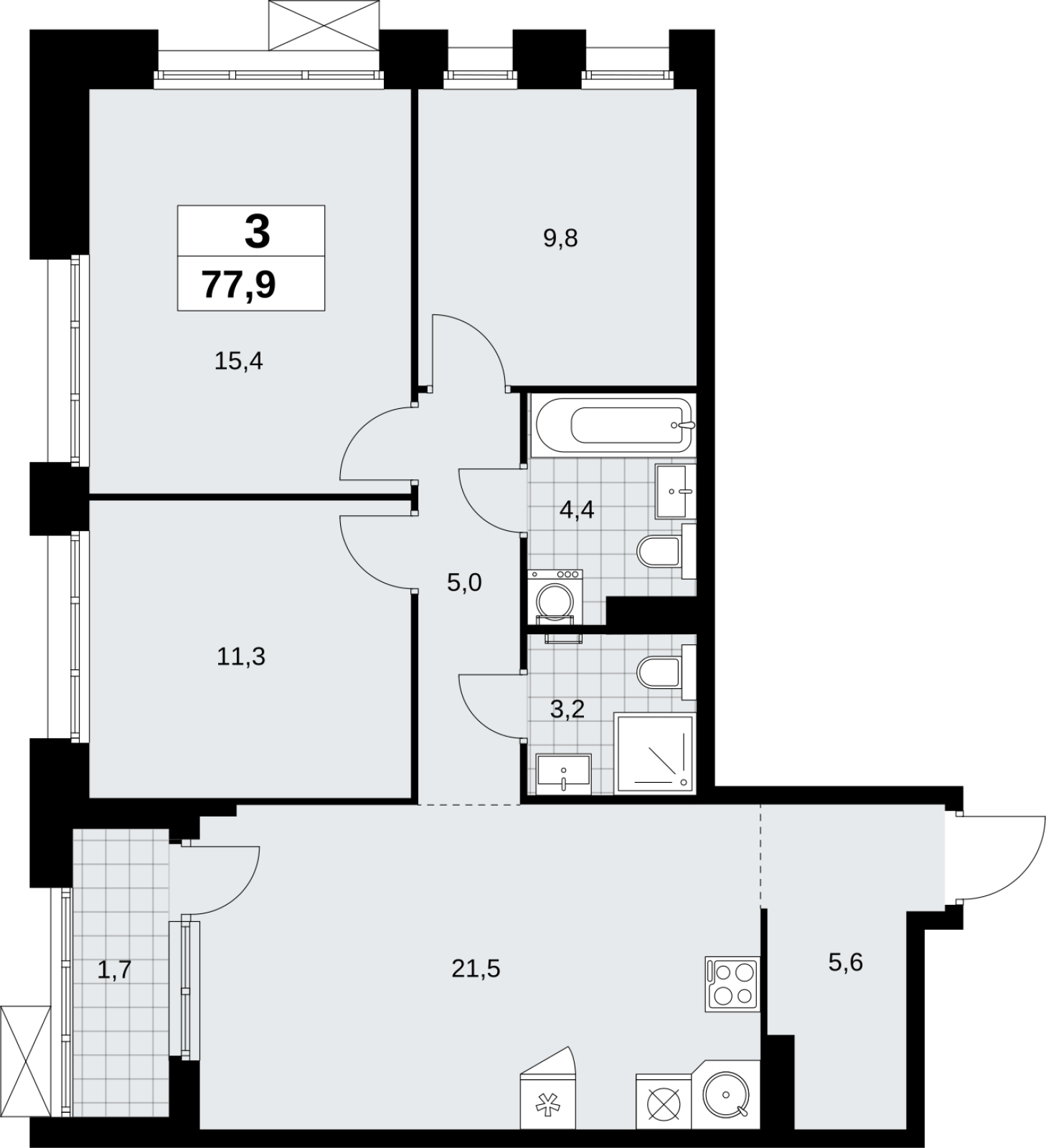 Продается трехкомнатная квартира с отделкой в новостройке, метро рядом Продается 3-комн. квартира с отделкой в ЖК "Прокшино" на 15 этаже. Общая площадь: 77.9 кв.м., жилая: 36.3 кв.м., площадь просторной кухни-столовой: 21.2 кв.м. Угловая квартира, окна oбecпeчивaют paвнoмepнoe ocвeщeниe в тeчeниe дня. В квартире одна лоджия, два совмещенных санузла. Высота потолков 2.95 м. Эта квартира будет сдана с дизайнеркой отделкой "под ключ". Специально для проекта «Прокшино» разработаны два стиля дизайнерской отделки – в тёплых и холодных тонах. В отделке используются только современный высококлассные материалы, на все работы предоставляется гарантия. Квартира находится в корпусе 9.3. Дом монолитный, одноподъездный, высотой 19 этажей. На этаже 9 квартир. В подъезде 1 пассажирский и 1 грузовой лифт. Начало строительства - 3 квартал 2025 года. Окончание строительства - 4 квартал 2027 года. Оформление сделки по договору долевого участия. Артикул квартиры по базе застройщика 58К-9.3-405. В шаговой доступности от жилого комплекса находятся станции метро (расстояние по прямой): «Филатов луг» (1.4 км), «Прокшино» (1.7 км), также недалеко от этого корпуса расположены станции метро: «Саларьево», «Румянцево», «Теплый стан». ПРЕДЛОЖЕНИЯ ОТ ЗАСТРОЙЩИКА В ОКТЯБРЕ 2025: Ипотека от 13,9 % для всех! На весь срок. "Семейная ипотека" вернулась. Ставка от 3,5 % на весь срок! Без удорожания! Выгодное ипотечное комбо: Ипотека от 2200 р./мес. и от 6 % после рождения ребёнка! Ипотека для всех "Держи пять!" - ставка 5 % на 2 года! *более подробную информацию по скидкам и акциям уточняйте в отделе продаж ЖК «Прокшино» расположен в 7,6 км от МКАД в Новой Москве. В 8 минутах пешком находится станция метро "Прокшино" быстрой и комфортной красной линии метро. Высокую транспортную доступность обеспечивают и два крупных шоссе, до которых легко доехать за 5 минут по новой скоростной автотрассе Солнцево – Бутово – Варшавское шоссе. Жилой комплекс "Прокшино" входит в кластер Прокшино. В районе появятся дома комфорт и бизнес-класса с подземным паркингом, закрытыми благоустроенными дворами без машин, местами для активного и созерцательного отдыха, магазинами, бытовыми сервисами и другими коммерческими объектами. Рядом пруд с собственной набережной и городской парк «Хованская дубрава». Для маленьких жителей построят детские сады, образовательный комплекс. (AQID02508721)