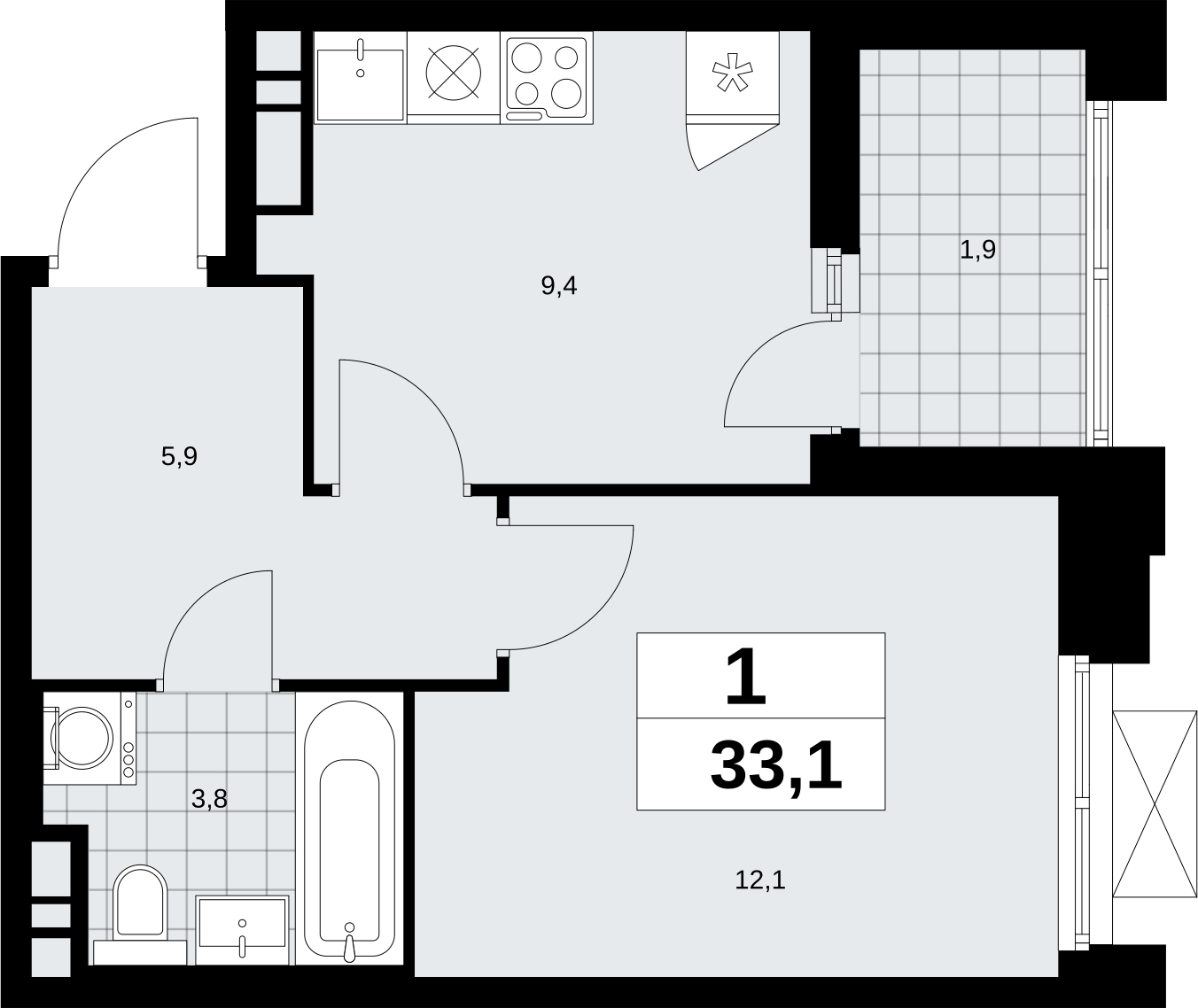 Продается 1-комнатная квартира в новостройке, метро рядом 1-комн. квартира в ЖК "Прокшино" на 11 этаже. Квартира без отделки, после оформления собственности можно делать ремонт. Общая площадь: 33.1 кв.м., жилая: 12.1 кв.м., площадь просторной кухни-столовой: 9.4 кв.м. Все окна выходят на одну сторону. В квартире одна лоджия, один совмещенный санузел. Высота потолков 2.95 м. Эта квартира предлагается без отделки. Будут установлены стеклопакеты с повышенной тепло- и шумоизоляцией, в квартиру заведены все коммуникации. Вы сможете в полном объеме реализовать ваши идеи обустройства вашего комфортного дома. Квартира находится в корпусе 7.1.4. Дом монолитный, одноподъездный, высотой 17 этажей. На этаже 9 квартир. В подъезде 1 пассажирский и 1 грузовой лифт. Начало строительства - 4 квартал 2024 года. Окончание строительства - 1 квартал 2027 года. Оформление сделки по договору долевого участия. Артикул квартиры по базе застройщика 58К-7.1.4-637. В шаговой доступности от жилого комплекса расположены станции метро (расстояние по прямой): «Филатов луг» (1.4 км), «Прокшино» (1.7 км), также недалеко от этого корпуса расположены станции метро: «Саларьево», «Румянцево», «Теплый стан». ПРЕДЛОЖЕНИЯ ОТ ЗАСТРОЙЩИКА В ОКТЯБРЕ 2025: Ипотека от 13,9 % для всех! На весь срок. "Семейная ипотека" вернулась. Ставка от 3,5 % на весь срок! Без удорожания! Выгодное ипотечное комбо: Ипотека от 2200 р./мес. и от 6 % после рождения ребёнка! Ипотека для всех "Держи пять!" - ставка 5 % на 2 года! *более подробную информацию по скидкам и акциям уточняйте в отделе продаж ЖК «Прокшино» расположен в 7,6 км от МКАД в Новой Москве. В 8 минутах пешком находится станция метро "Прокшино" быстрой и комфортной красной линии метро. Высокую транспортную доступность обеспечивают и два крупных шоссе, до которых легко доехать за 5 минут по новой скоростной автотрассе Солнцево – Бутово – Варшавское шоссе. Жилой комплекс "Прокшино" входит в кластер Прокшино. В районе появятся дома комфорт и бизнес-класса с подземным паркингом, закрытыми благоустроенными дворами без машин, местами для активного и созерцательного отдыха, магазинами, бытовыми сервисами и другими коммерческими объектами. Рядом пруд с собственной набережной и городской парк «Хованская дубрава». Для маленьких жителей построят детские сады, образовательный комплекс. (AQID02422325)