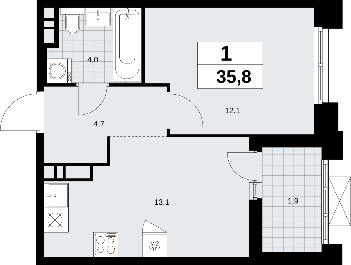 Продается 1-комнатная квартира в новом жилом комплексе, рядом с метро Продается однокомнатная квартира в ЖК "Прокшино" на 12 этаже. Квартира без отделки, полностью готова к ремонту. Общая площадь: 35.8 кв.м., жилая: 12.1 кв.м., площадь просторной кухни-столовой: 13.1 кв.м. Все окна выходят на одну сторону. В квартире одна лоджия, один совмещенный санузел. Высота потолков 2.95 м. Эта квартира предлагается без отделки. Будут установлены стеклопакеты с повышенной тепло- и шумоизоляцией, в квартиру заведены все коммуникации. Вы сможете в полном объеме реализовать ваши идеи обустройства вашего комфортного дома. Квартира находится в корпусе 7.1.4. Дом монолитный, одноподъездный, высотой 17 этажей. На этаже 9 квартир. В подъезде 1 пассажирский и 1 грузовой лифт. Начало строительства - 4 квартал 2024 года. Окончание строительства - 1 квартал 2027 года. Оформление сделки по договору долевого участия. Артикул квартиры по базе застройщика 58К-7.1.4-638. В шаговой доступности от жилого комплекса расположены станции метро (расстояние по прямой): «Филатов луг» (1.4 км), «Прокшино» (1.7 км), также недалеко от этого корпуса находятся станции метро: «Саларьево», «Румянцево», «Теплый стан». ПРЕДЛОЖЕНИЯ ОТ ЗАСТРОЙЩИКА В ОКТЯБРЕ 2025: Ипотека от 13,9 % для всех! На весь срок. "Семейная ипотека" вернулась. Ставка от 3,5 % на весь срок! Без удорожания! Выгодное ипотечное комбо: Ипотека от 2200 р./мес. и от 6 % после рождения ребёнка! Ипотека для всех "Держи пять!" - ставка 5 % на 2 года! *более подробную информацию по скидкам и акциям уточняйте в отделе продаж ЖК «Прокшино» расположен в 7,6 км от МКАД в Новой Москве. В 8 минутах пешком находится станция метро "Прокшино" быстрой и комфортной красной линии метро. Высокую транспортную доступность обеспечивают и два крупных шоссе, до которых легко доехать за 5 минут по новой скоростной автотрассе Солнцево – Бутово – Варшавское шоссе. Жилой комплекс "Прокшино" входит в кластер Прокшино. В районе появятся дома комфорт и бизнес-класса с подземным паркингом, закрытыми благоустроенными дворами без машин, местами для активного и созерцательного отдыха, магазинами, бытовыми сервисами и другими коммерческими объектами. Рядом пруд с собственной набережной и городской парк «Хованская дубрава». Для маленьких жителей построят детские сады, образовательный комплекс. (AQID02422326)