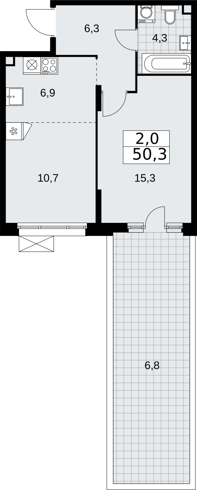 2-комнатная квартира с европланировкой с террасой и отделкой в новом ЖК, рядом с метро 2-комн. квартира с европланировкой и отделкой в ЖК "Прокшино" на 2 этаже. Общая площадь: 50.3 кв.м., жилая: 26 кв.м., суммарная площадь гостиной-столовой с кухонной зоной: 17.6 кв.м. Европланировка, кухня и гостиная объединены в одно просторное помещение. Комнаты изолированные, все окна выходят на одну сторону. В квартире один балкон, один совмещенный санузел. Терраса представляет собой роскошную зону отдыха, где вы на свой вкус можете создать атмосферу комфорта и уюта. Высота потолков 2.99 м. Эта квартира будет сдана с дизайнеркой отделкой "под ключ". Специально для проекта «Прокшино» разработаны два стиля дизайнерской отделки – в тёплых и холодных тонах. В отделке используются только современный высококлассные материалы, на все работы предоставляется гарантия. Квартира находится в корпусе 10.1.6. Дом монолитный, одноподъездный, высотой 15 этажей. На этаже 9 квартир. В подъезде 1 пассажирский и 1 грузовой лифт. Начало строительства - 2 квартал 2023 года. Окончание строительства - 2 квартал 2026 года. Оформление сделки по договору долевого участия. Артикул квартиры по базе застройщика 58К-10.1.6-1269. В шаговой доступности от жилого комплекса расположены станции метро (расстояние по прямой): «Филатов луг» (1.4 км), «Прокшино» (1.7 км), также недалеко от этого корпуса расположены станции метро: «Саларьево», «Румянцево», «Теплый стан». ПРЕДЛОЖЕНИЯ ОТ ЗАСТРОЙЩИКА В ОКТЯБРЕ 2025: Ипотека от 13,9 % для всех! На весь срок. "Семейная ипотека" вернулась. Ставка от 3,5 % на весь срок! Без удорожания! Выгодное ипотечное комбо: Ипотека от 2200 р./мес. и от 6 % после рождения ребёнка! Ипотека для всех "Держи пять!" - ставка 5 % на 2 года! *более подробную информацию по скидкам и акциям уточняйте в отделе продаж ЖК «Прокшино» расположен в 7,6 км от МКАД в Новой Москве. В 8 минутах пешком находится станция метро "Прокшино" быстрой и комфортной красной линии метро. Высокую транспортную доступность обеспечивают и два крупных шоссе, до которых легко доехать за 5 минут по новой скоростной автотрассе Солнцево – Бутово – Варшавское шоссе. Жилой комплекс "Прокшино" входит в кластер Прокшино. В районе появятся дома комфорт и бизнес-класса с подземным паркингом, закрытыми благоустроенными дворами без машин, местами для активного и созерцательного отдыха, магазинами, бытовыми сервисами и другими коммерческими объектами. Рядом пруд с собственной набережной и городской парк «Хованская дубрава». Для маленьких жителей построят детские сады, образовательный комплекс. (AQID02438165)
