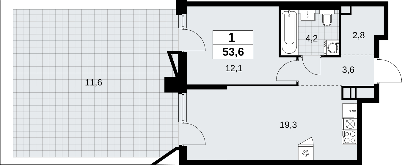 Продаю 1-комнатную квартиру с террасой в новом жилом комплексе, у метро Продаю однокомнатную квартиру площадью 53.6 кв.м., без отделки, на 2 этаже из 17 в жилом комплексе комфорт-класса "Прокшино". В квартире изолированные комнаты, а все окна выходят на одну сторону. В квартире один балкон, один совмещенный санузел. Терраса представляет собой роскошную зону отдыха для проведение вечеров в кругу семьи и друзей или организация вечеринок. Высота потолков 2.95 м. Корпус 7.1.4 в ЖК "Прокшино", в котором расположена квартира, будет построен в 2027 году. Дом монолитный, в корпусе всего один подъезд, есть 1 пассажирский и 1 грузовой лифт. ЖК "Прокшино" - новый проект от надежного застройщика А101. Жилой район «Прокшино» строится в 7,6 км от МКАД. Высокую транспортную доступность обеспечивают близко расположенная станция метро и два крупных шоссе, до которых легко доехать за 5 минут по новой скоростной автотрассе Солнцево – Бутово – Варшавское шоссе (СБВ). В жилом районе «Прокшино» будет всё, чтобы жить счастливой, насыщенной и яркой жизнью. Основная идея района «Прокшино» – создание жилого пространства по принципу Live-Work-Shop-Play (Живи-Работай-Делай покупки-Отдыхай). До ближайшей станции метро «Прокшино» можно добраться пешком всего за 10 минут. Также за 4-10 минут на общественном транспорте можно доехать до станций метро «Филатов луг», «Саларьево», «Румянцево» и «Теплый стан». (AQID02488944)