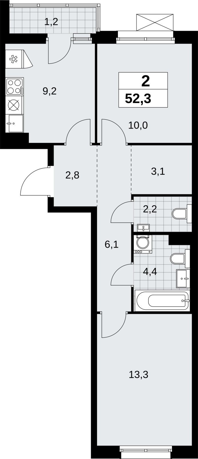Продается 2-комнатная квартира в новом ЖК, недалеко от метро 2-комн. квартира от застройщика в ЖК "Прокшино" на 8 этаже. Квартира без отделки, после оформления собственности можно делать ремонт. Общая площадь: 52.3 кв.м., жилая: 23.3 кв.м., площадь просторной кухни-столовой: 9.2 кв.м. Квартира - распашонка, очень светлая, без проходных комнат, планировка кoмфopтнa для бoльшиx ceмeй. В квартире один балкон, один совмещенный и один раздельный санузел. Высота потолков 2.95 м. Эта квартира предлагается без отделки. Будут установлены стеклопакеты с повышенной тепло- и шумоизоляцией, в квартиру заведены все коммуникации. Вы сможете в полном объеме реализовать ваши идеи обустройства вашего комфортного дома. Имеется ниша под гардероб. Дом монолитный, двухподъездный, высотой 13 этажей. Квартира находится во 2-й секции в корпусе 9.1. На этаже 5 квартир. В подъезде 1 пассажирский и 1 грузовой лифт. Начало строительства - 3 квартал 2025 года. Окончание строительства - 4 квартал 2027 года. Оформление сделки по договору долевого участия. Артикул квартиры по базе застройщика 58К-9.1-81. В шаговой доступности от жилого комплекса находятся станции метро (расстояние по прямой): «Филатов луг» (1.4 км), «Прокшино» (1.7 км), также недалеко от этого корпуса расположены станции метро: «Саларьево», «Румянцево», «Теплый стан». ПРЕДЛОЖЕНИЯ ОТ ЗАСТРОЙЩИКА В ОКТЯБРЕ 2025: Ипотека от 13,9 % для всех! На весь срок. "Семейная ипотека" вернулась. Ставка от 3,5 % на весь срок! Без удорожания! Выгодное ипотечное комбо: Ипотека от 2200 р./мес. и от 6 % после рождения ребёнка! Ипотека для всех "Держи пять!" - ставка 5 % на 2 года! *более подробную информацию по скидкам и акциям уточняйте в отделе продаж ЖК «Прокшино» расположен в 7,6 км от МКАД в Новой Москве. В 8 минутах пешком находится станция метро "Прокшино" быстрой и комфортной красной линии метро. Высокую транспортную доступность обеспечивают и два крупных шоссе, до которых легко доехать за 5 минут по новой скоростной автотрассе Солнцево – Бутово – Варшавское шоссе. Жилой комплекс "Прокшино" входит в кластер Прокшино. В районе появятся дома комфорт и бизнес-класса с подземным паркингом, закрытыми благоустроенными дворами без машин, местами для активного и созерцательного отдыха, магазинами, бытовыми сервисами и другими коммерческими объектами. Рядом пруд с собственной набережной и городской парк «Хованская дубрава». Для маленьких жителей построят детские сады, образовательный комплекс. (AQID02508411)