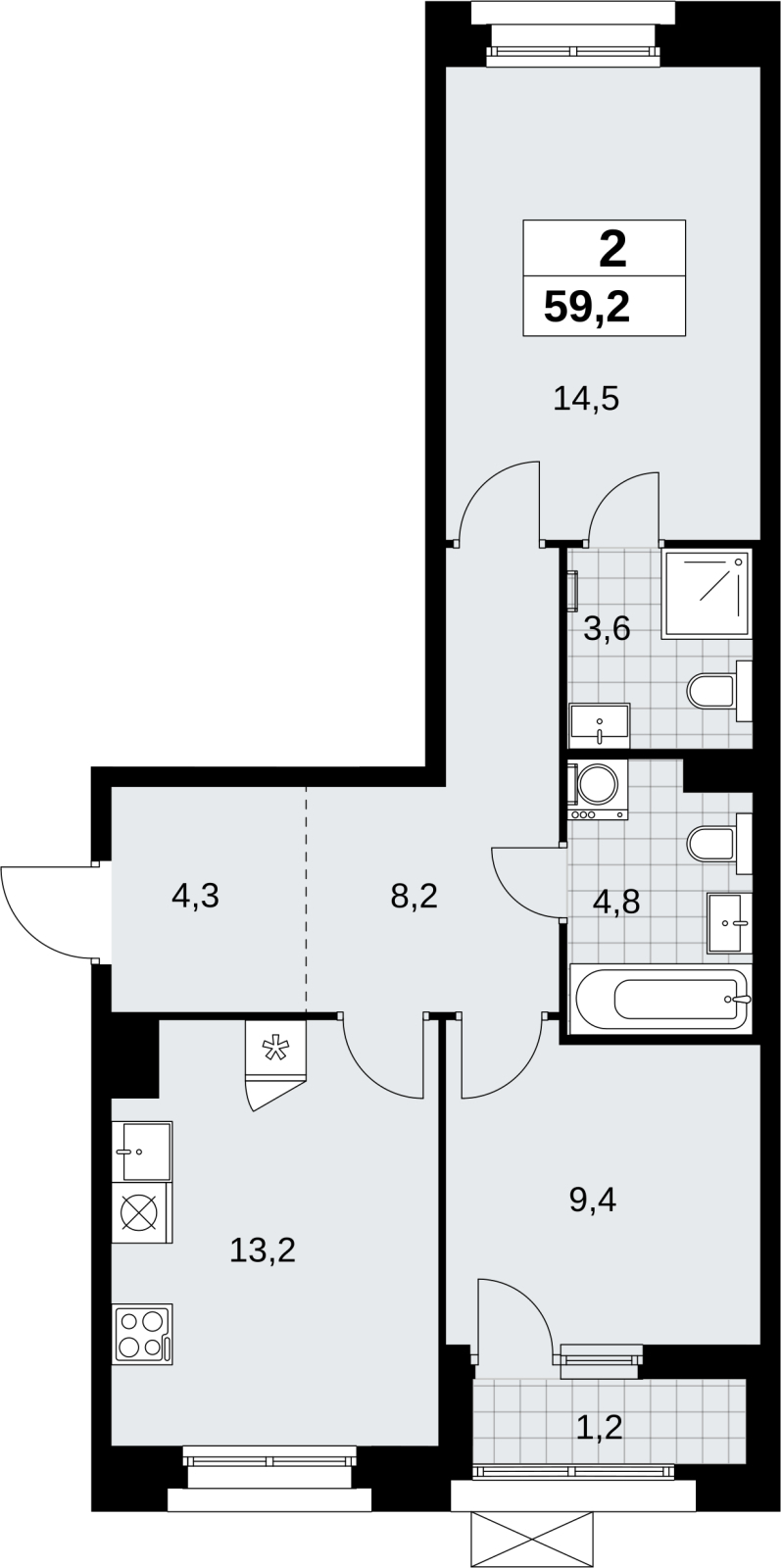 2-комнатная квартира в новом ЖК, у метро Продается двухкомнатная квартира в ЖК "Прокшино" на 8 этаже. Квартира без отделки, новый собственник может сделать ремонт по своему дизайн-проекту. Общая площадь: 59.2 кв.м., жилая: 23.9 кв.м., площадь просторной кухни-столовой: 13.2 кв.м. Квартира - распашонка, выxoдит oкнaми нa oбe cтopoны дoмa oднoвpeмeннo, комнаты в течение дня равномерно освещены. В квартире одна лоджия, два совмещенных санузла. Высота потолков 2.95 м. Эта квартира предлагается без отделки. Будут установлены стеклопакеты с повышенной тепло- и шумоизоляцией, в квартиру заведены все коммуникации. Вы сможете в полном объеме реализовать ваши идеи обустройства вашего комфортного дома. Дом монолитный, черырехподъездный, переменной этажности, от 10 до 14 этажей. Квартира находится в 1-й секции высотой 10 этажей в корпусе 9.2. На этаже 5 квартир. В подъезде 1 грузовой лифт. Начало строительства - 3 квартал 2025 года. Окончание строительства - 4 квартал 2027 года. Оформление сделки по договору долевого участия. Артикул квартиры по базе застройщика 58К-9.2-131. В шаговой доступности от жилого комплекса находятся станции метро (расстояние по прямой): «Филатов луг» (1.4 км), «Прокшино» (1.7 км), также недалеко от этого корпуса находятся станции метро: «Саларьево», «Румянцево», «Теплый стан». ПРЕДЛОЖЕНИЯ ОТ ЗАСТРОЙЩИКА В ОКТЯБРЕ 2025: Ипотека от 13,9 % для всех! На весь срок. "Семейная ипотека" вернулась. Ставка от 3,5 % на весь срок! Без удорожания! Выгодное ипотечное комбо: Ипотека от 2200 р./мес. и от 6 % после рождения ребёнка! Ипотека для всех "Держи пять!" - ставка 5 % на 2 года! *более подробную информацию по скидкам и акциям уточняйте в отделе продаж ЖК «Прокшино» расположен в 7,6 км от МКАД в Новой Москве. В 8 минутах пешком находится станция метро "Прокшино" быстрой и комфортной красной линии метро. Высокую транспортную доступность обеспечивают и два крупных шоссе, до которых легко доехать за 5 минут по новой скоростной автотрассе Солнцево – Бутово – Варшавское шоссе. Жилой комплекс "Прокшино" входит в кластер Прокшино. В районе появятся дома комфорт и бизнес-класса с подземным паркингом, закрытыми благоустроенными дворами без машин, местами для активного и созерцательного отдыха, магазинами, бытовыми сервисами и другими коммерческими объектами. Рядом пруд с собственной набережной и городской парк «Хованская дубрава». Для маленьких жителей построят детские сады, образовательный комплекс. (AQID02508458)