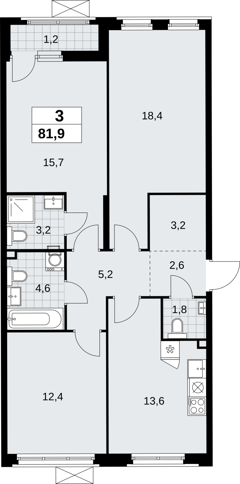3-комнатная квартира в новостройке, метро рядом Трехкомнатная квартира от застройщика в ЖК "Прокшино" на 2 этаже. Квартира без отделки, после оформления собственности можно делать ремонт. Общая площадь: 81.9 кв.м., жилая: 46.5 кв.м., площадь просторной кухни-столовой: 13.6 кв.м. Квартира - распашонка, без проходных комнат, окна выходят на paзные стороны дома. В квартире одна лоджия, два совмещенных и один раздельный санузел. Высота потолков 2.95 м. Эта квартира предлагается без отделки. Будут установлены стеклопакеты с повышенной тепло- и шумоизоляцией, в квартиру заведены все коммуникации. Вы сможете в полном объеме реализовать ваши идеи обустройства вашего комфортного дома. Имеется ниша под гардероб. Дом монолитный, черырехподъездный, переменной этажности, от 10 до 14 этажей. Квартира находится во 2-й секции высотой 14 этажей в корпусе 9.2. На этаже 5 квартир. В подъезде 1 пассажирский и 1 грузовой лифт. Начало строительства - 3 квартал 2025 года. Окончание строительства - 4 квартал 2027 года. Оформление сделки по договору долевого участия. Артикул квартиры по базе застройщика 58К-9.2-135. В шаговой доступности от жилого комплекса расположены станции метро (расстояние по прямой): «Филатов луг» (1.4 км), «Прокшино» (1.7 км), также недалеко от этого корпуса расположены станции метро: «Саларьево», «Румянцево», «Теплый стан». ПРЕДЛОЖЕНИЯ ОТ ЗАСТРОЙЩИКА В ОКТЯБРЕ 2025: Ипотека от 13,9 % для всех! На весь срок. "Семейная ипотека" вернулась. Ставка от 3,5 % на весь срок! Без удорожания! Выгодное ипотечное комбо: Ипотека от 2200 р./мес. и от 6 % после рождения ребёнка! Ипотека для всех "Держи пять!" - ставка 5 % на 2 года! *более подробную информацию по скидкам и акциям уточняйте в отделе продаж ЖК «Прокшино» расположен в 7,6 км от МКАД в Новой Москве. В 8 минутах пешком находится станция метро "Прокшино" быстрой и комфортной красной линии метро. Высокую транспортную доступность обеспечивают и два крупных шоссе, до которых легко доехать за 5 минут по новой скоростной автотрассе Солнцево – Бутово – Варшавское шоссе. Жилой комплекс "Прокшино" входит в кластер Прокшино. В районе появятся дома комфорт и бизнес-класса с подземным паркингом, закрытыми благоустроенными дворами без машин, местами для активного и созерцательного отдыха, магазинами, бытовыми сервисами и другими коммерческими объектами. Рядом пруд с собственной набережной и городской парк «Хованская дубрава». Для маленьких жителей построят детские сады, образовательный комплекс. (AQID02508460)