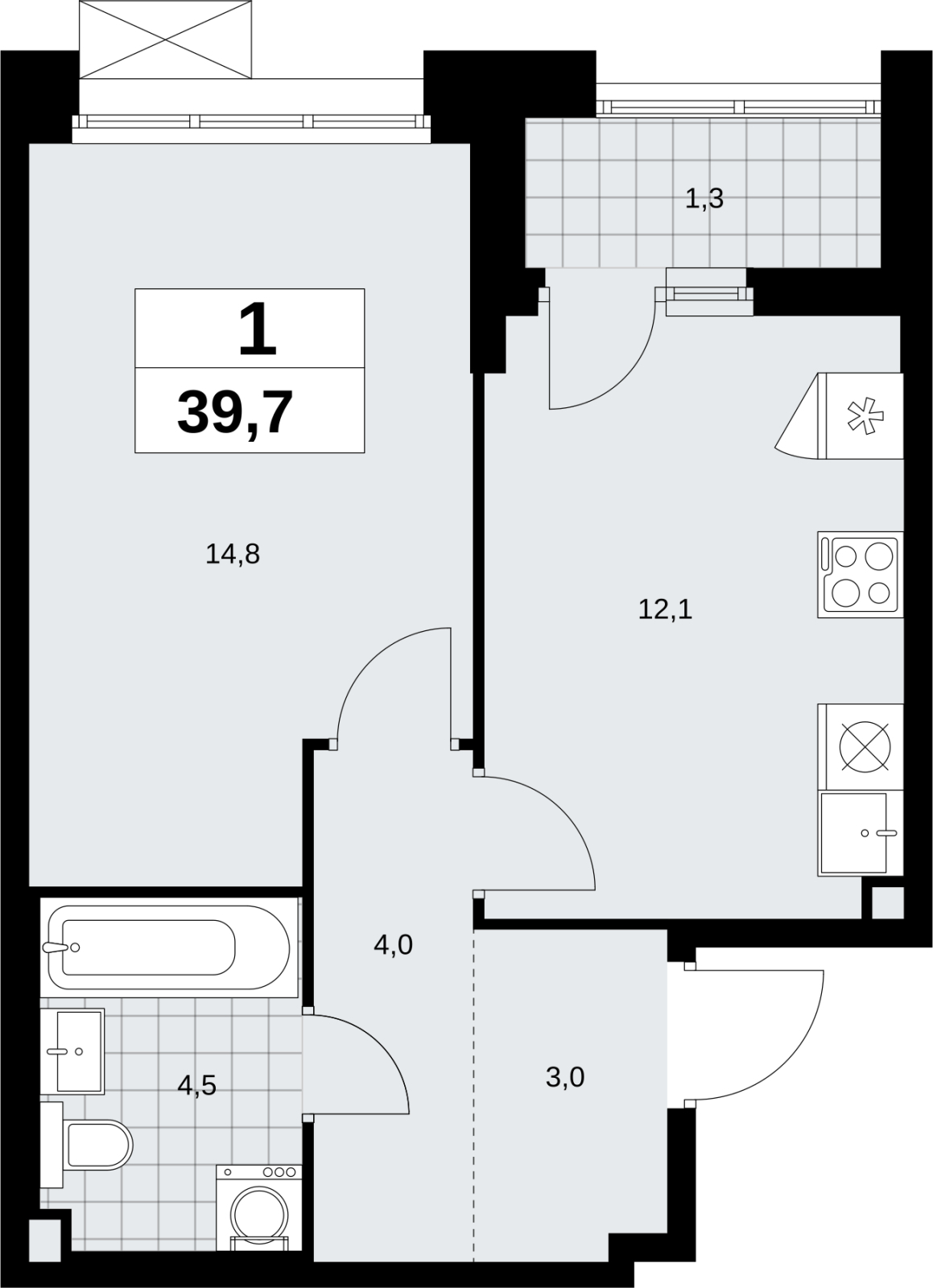 Площадь:39 м2