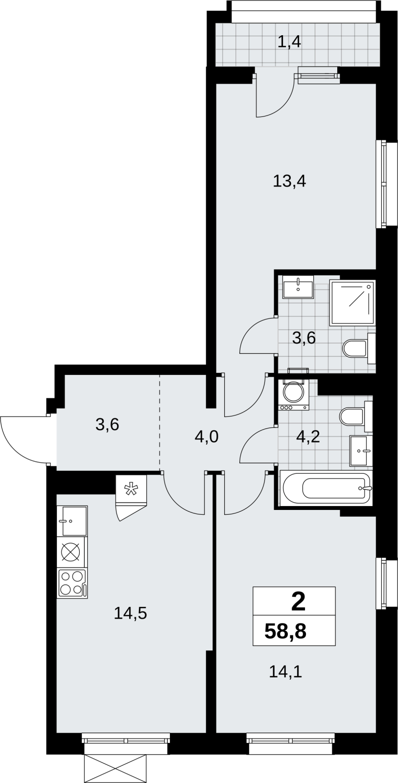Площадь:58 м2