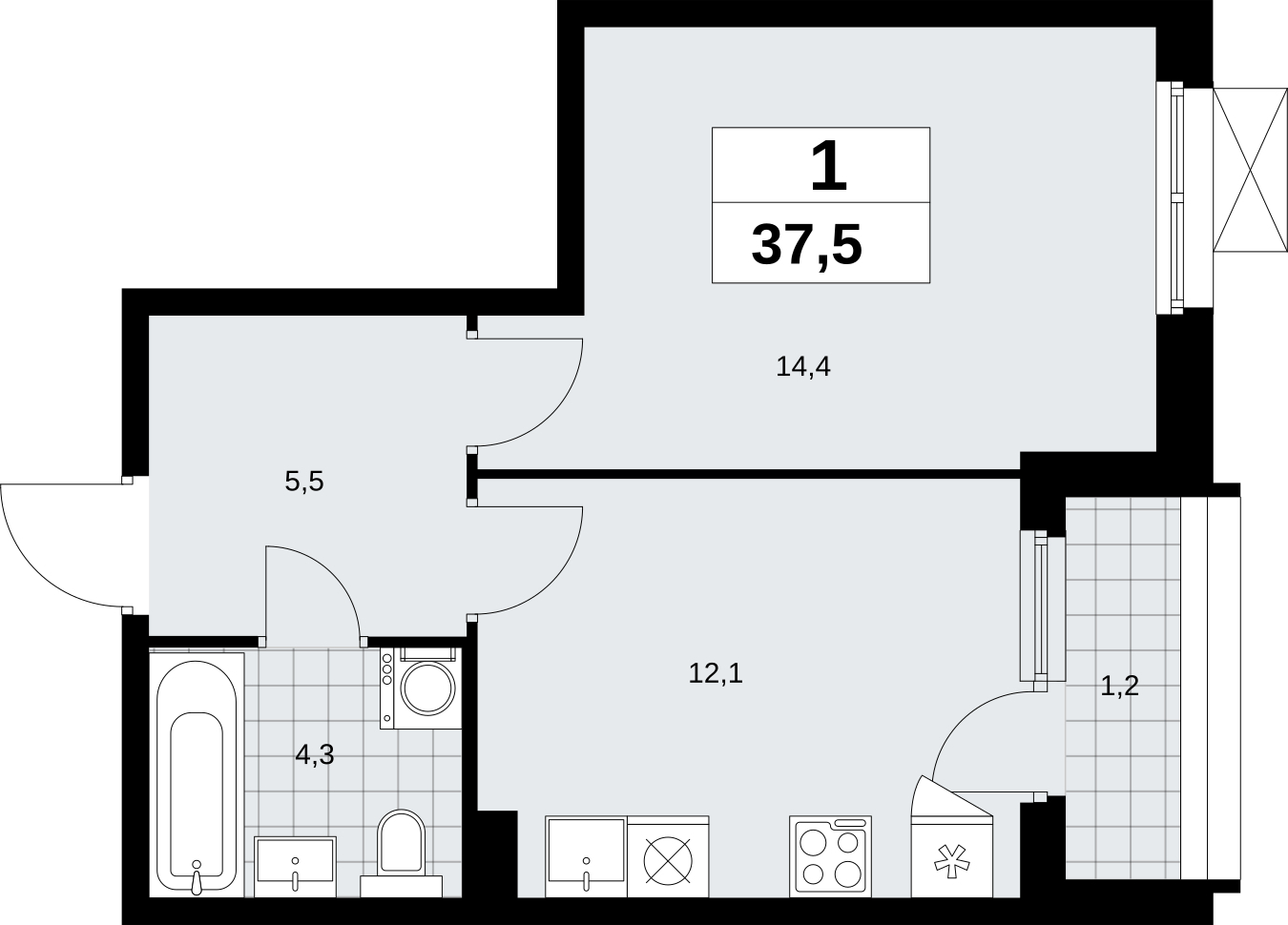 Площадь:37 м2