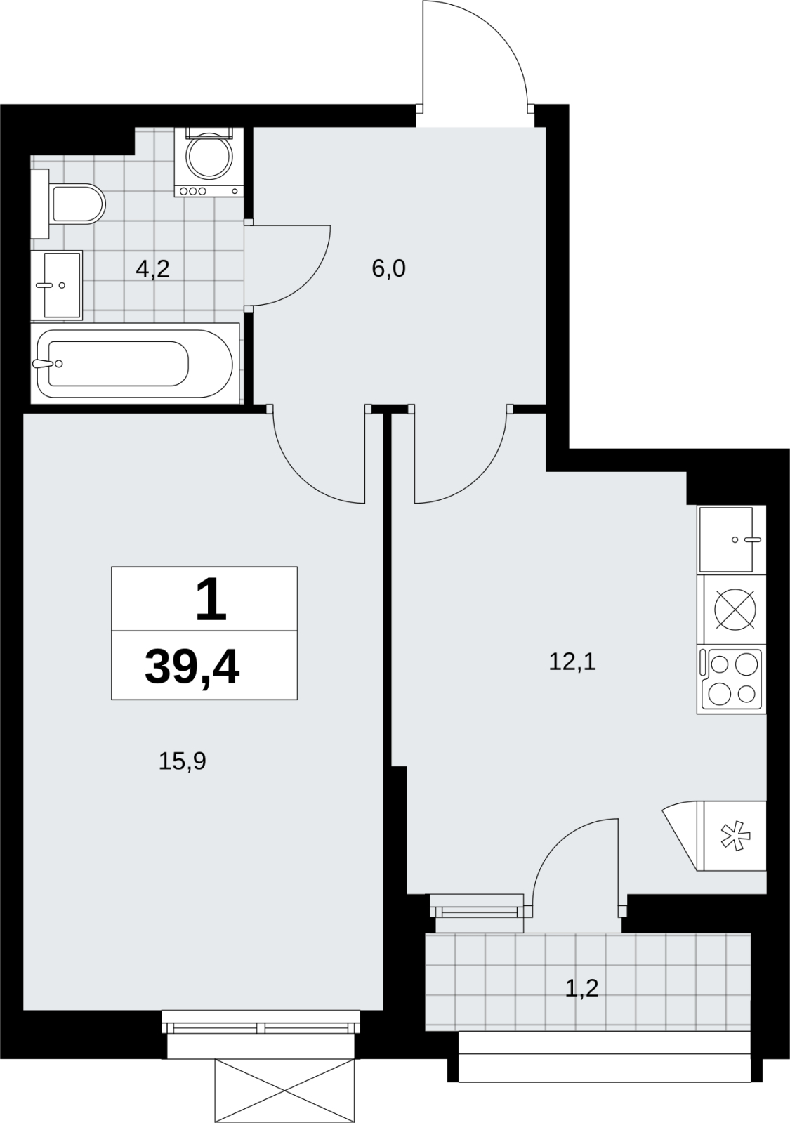 Площадь:39 м2