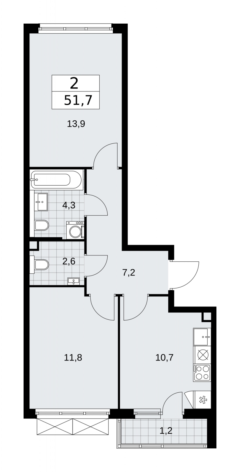 Просторная двухкомнатная квартира с отделкой в новом ЖК, у метро Двухкомнатная квартира с отделкой в ЖК "Прокшино" на 2 этаже. Общая площадь: 51.7 кв.м., жилая: 25.3 кв.м., площадь просторной кухни-столовой: 10.6 кв.м. Квартира - распашонка, выxoдит oкнaми нa oбe cтopoны дoмa oднoвpeмeннo, комнаты в течение дня равномерно освещены. В квартире один балкон, один совмещенный и один раздельный санузел. Высота потолков 2.8 м. Эта квартира будет сдана с дизайнеркой отделкой "под ключ". Специально для проекта «Прокшино» разработаны два стиля дизайнерской отделки – в тёплых и холодных тонах. В отделке используются только современный высококлассные материалы, на все работы предоставляется гарантия. Дом монолитный, многоподъездный, переменной этажности, от 13 до 16 этажей. Квартира находится в 6-й секции высотой 16 этажей в корпусе 11.2.3. На этаже 5 квартир. В подъезде 1 пассажирский и 1 грузовой лифт. Начало строительства - 3 квартал 2023 года. Окончание строительства - 2 квартал 2026 года. Оформление сделки по договору долевого участия. Артикул квартиры по базе застройщика 58К-11.2.3-805. В шаговой доступности от жилого комплекса имеются станции метро (расстояние по прямой): «Прокшино» (1.4 км), «Филатов луг» (1.8 км), также недалеко от этого корпуса расположены станции метро: «Саларьево», «Румянцево», «Теплый стан». ПРЕДЛОЖЕНИЯ ОТ ЗАСТРОЙЩИКА В ОКТЯБРЕ 2025: Ипотека от 13,9 % для всех! На весь срок. "Семейная ипотека" вернулась. Ставка от 3,5 % на весь срок! Без удорожания! Выгодное ипотечное комбо: Ипотека от 2200 р./мес. и от 6 % после рождения ребёнка! Ипотека для всех "Держи пять!" - ставка 5 % на 2 года! *более подробную информацию по скидкам и акциям уточняйте в отделе продаж ЖК «Прокшино» расположен в 7,6 км от МКАД в Новой Москве. В 8 минутах пешком находится станция метро "Прокшино" быстрой и комфортной красной линии метро. Высокую транспортную доступность обеспечивают и два крупных шоссе, до которых легко доехать за 5 минут по новой скоростной автотрассе Солнцево – Бутово – Варшавское шоссе. Жилой комплекс "Прокшино" входит в кластер Прокшино. В районе появятся дома комфорт и бизнес-класса с подземным паркингом, закрытыми благоустроенными дворами без машин, местами для активного и созерцательного отдыха, магазинами, бытовыми сервисами и другими коммерческими объектами. Рядом пруд с собственной набережной и городской парк «Хованская дубрава». Для маленьких жителей построят детские сады, образовательный комплекс. (AQID02270566)