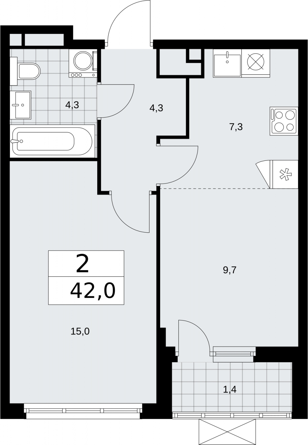Площадь:42 м2