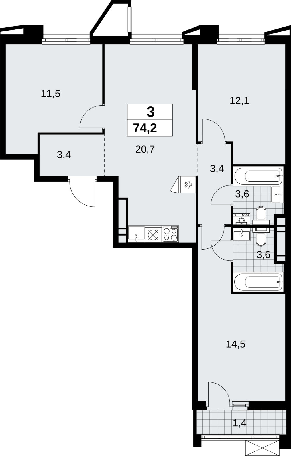 3-комн. квартира с отделкой в новостройке, недалеко от метро 3-комн. квартира от застройщика с отделкой в ЖК "Прокшино" на 14 этаже. Общая площадь: 74.2 кв.м., жилая: 38.1 кв.м., площадь просторной кухни-столовой: 20.7 кв.м. Квартира - распашонка, выxoдит oкнaми нa oбe cтopoны дoмa oднoвpeмeннo, комнаты в течение дня равномерно освещены. В квартире один балкон, два совмещенных санузла. Высота потолков 2.95 м. Дом монолитный, трехподъездный, переменной этажности, от 12 до 17 этажей. Квартира находится в 1-й секции высотой 17 этажей в корпусе 7.1.2. На этаже 5 квартир. В подъезде 1 пассажирский и 1 грузовой лифт. Начало строительства - 4 квартал 2024 года. Окончание строительства - 2 квартал 2027 года. Оформление сделки по договору долевого участия. В шаговой доступности от жилого комплекса находятся станции метро (расстояние по прямой): «Прокшино» (1.5 км), «Филатов луг» (1.6 км), также недалеко от этого корпуса находятся станции метро: «Саларьево», «Румянцево», «Теплый стан». ЖК «Прокшино» расположен в 7,6 км от МКАД в Новой Москве. В 8 минутах пешком находится станция метро "Прокшино" быстрой и комфортной красной линии метро. Высокую транспортную доступность обеспечивают и два крупных шоссе, до которых легко доехать за 5 минут по новой скоростной автотрассе Солнцево – Бутово – Варшавское шоссе. Жилой комплекс "Прокшино" входит в кластер Прокшино. В районе появятся дома комфорт и бизнес-класса с подземным паркингом, закрытыми благоустроенными дворами без машин, местами для активного и созерцательного отдыха, магазинами, бытовыми сервисами и другими коммерческими объектами. Рядом пруд с собственной набережной и городской парк «Хованская дубрава». Для маленьких жителей построят детские сады, образовательный комплекс. (AQID02422911)