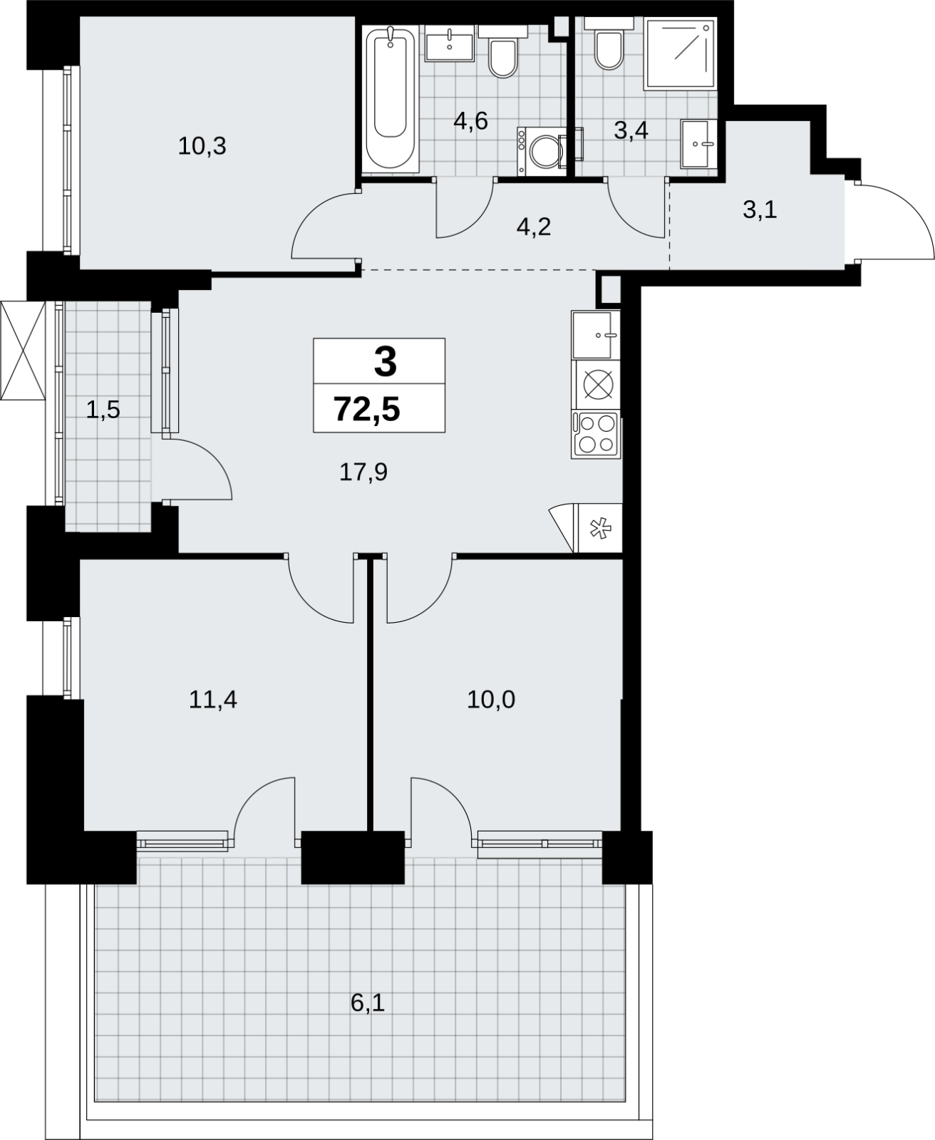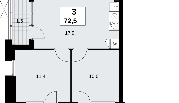 3-комнатная квартира с террасой и отделкой в новостройке, метро рядом Просторная трехкомнатная квартира с отделкой в ЖК "Прокшино" на 2 этаже. Общая площадь: 72.5 кв.м., жилая: 31.7 кв.м., площадь просторной кухни-столовой: 17.9 кв.м. Квартира угловая, идеально подойдет любителям тишины и панорамных видов. В квартире один балкон, два совмещенных санузла. Терраса представляет собой роскошную зону отдыха, где вы на свой вкус можете создать атмосферу комфорта и уюта. Высота потолков 2.95 м. Квартира находится в корпусе 9.3. Дом монолитный, одноподъездный, высотой 19 этажей. На этаже 9 квартир. В подъезде 1 пассажирский и 1 грузовой лифт. Начало строительства - 3 квартал 2025 года. Окончание строительства - 4 квартал 2027 года. Оформление сделки по договору долевого участия. В шаговой доступности от жилого комплекса находятся станции метро (расстояние по прямой): «Прокшино» (1.5 км), «Филатов луг» (1.6 км), также недалеко от этого корпуса расположены станции метро: «Саларьево», «Румянцево», «Теплый стан». ЖК «Прокшино» расположен в 7,6 км от МКАД в Новой Москве. В 8 минутах пешком находится станция метро "Прокшино" быстрой и комфортной красной линии метро. Высокую транспортную доступность обеспечивают и два крупных шоссе, до которых легко доехать за 5 минут по новой скоростной автотрассе Солнцево – Бутово – Варшавское шоссе. Жилой комплекс "Прокшино" входит в кластер Прокшино. В районе появятся дома комфорт и бизнес-класса с подземным паркингом, закрытыми благоустроенными дворами без машин, местами для активного и созерцательного отдыха, магазинами, бытовыми сервисами и другими коммерческими объектами. Рядом пруд с собственной набережной и городской парк «Хованская дубрава». Для маленьких жителей построят детские сады, образовательный комплекс. (AQID02509263)
