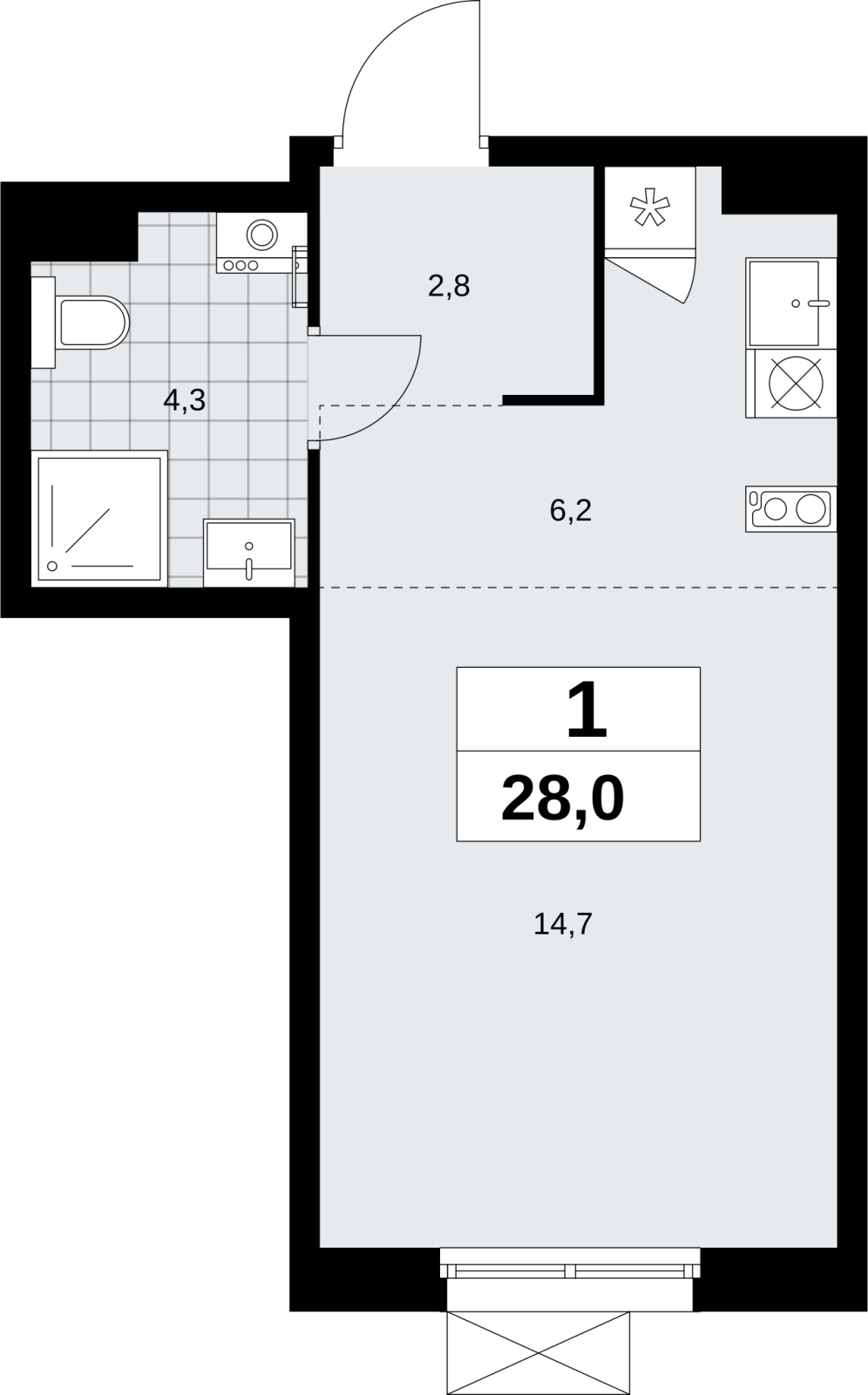 Площадь:28 м2