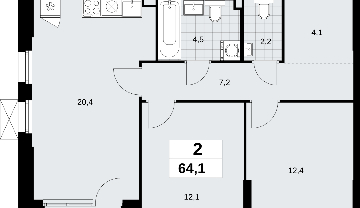 Площадь:64 м2