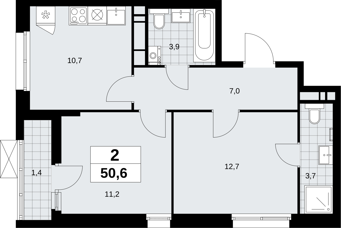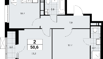 2-комн. квартира в новостройке, метро рядом Продается 2-комн. квартира в ЖК "Прокшино" на 12 этаже. Квартира без отделки, после оформления собственности можно делать ремонт. Общая площадь: 50.6 кв.м., жилая: 23.9 кв.м., площадь просторной кухни-столовой: 10.7 кв.м. Квартира угловая, очень светлая, естественная вентиляция при открытии окон. В квартире одна лоджия, два совмещенных санузла. Высота потолков 2.95 м. Эта квартира предлагается без отделки. Будут установлены стеклопакеты с повышенной тепло- и шумоизоляцией, в квартиру заведены все коммуникации. Вы сможете в полном объеме реализовать ваши идеи обустройства вашего комфортного дома. Дом монолитный, трехподъездный, переменной этажности, от 12 до 16 этажей. Квартира находится в 1-й секции высотой 12 этажей в корпусе 7.1.1. На этаже 5 квартир. В подъезде 1 пассажирский и 1 грузовой лифт. Начало строительства - 4 квартал 2024 года. Окончание строительства - 1 квартал 2027 года. Оформление сделки по договору долевого участия. Артикул квартиры по базе застройщика 58К-7.1.1-51. В шаговой доступности от жилого комплекса имеются станции метро (расстояние по прямой): «Прокшино» (1.4 км), «Филатов луг» (1.8 км), также недалеко от этого корпуса расположены станции метро: «Саларьево», «Румянцево», «Теплый стан». ЖК «Прокшино» расположен в 7,6 км от МКАД в Новой Москве. В 8 минутах пешком находится станция метро "Прокшино" быстрой и комфортной красной линии метро. Высокую транспортную доступность обеспечивают и два крупных шоссе, до которых легко доехать за 5 минут по новой скоростной автотрассе Солнцево – Бутово – Варшавское шоссе. Жилой комплекс "Прокшино" входит в кластер Прокшино. В районе появятся дома комфорт и бизнес-класса с подземным паркингом, закрытыми благоустроенными дворами без машин, местами для активного и созерцательного отдыха, магазинами, бытовыми сервисами и другими коммерческими объектами. Рядом пруд с собственной набережной и городской парк «Хованская дубрава». Для маленьких жителей построят детские сады, образовательный комплекс. (AQID02421739)