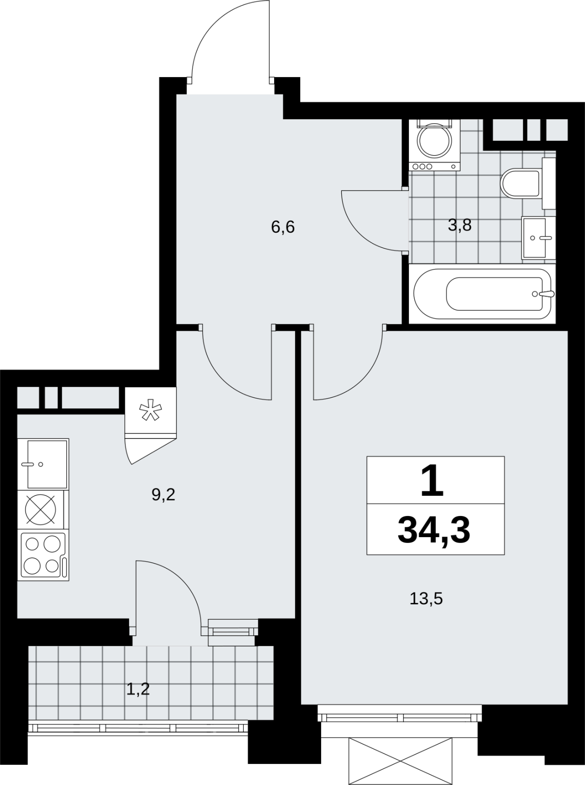 Площадь:34 м2
