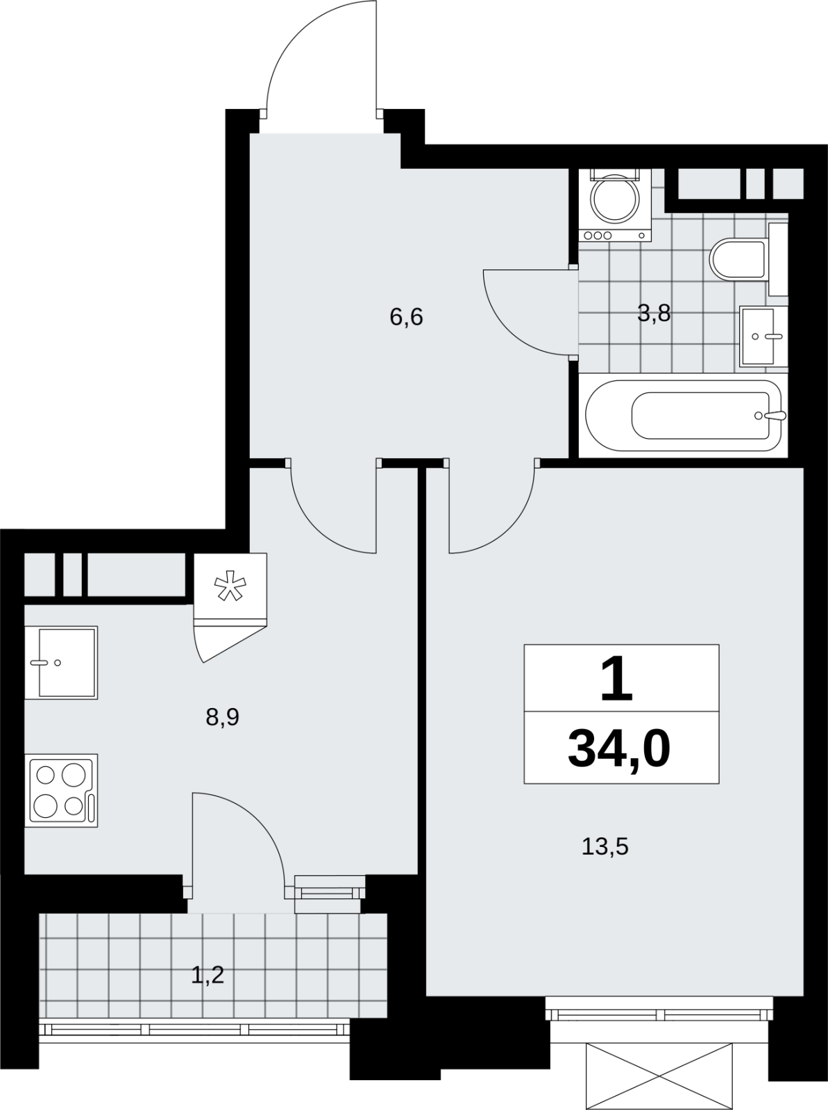 Площадь:34 м2