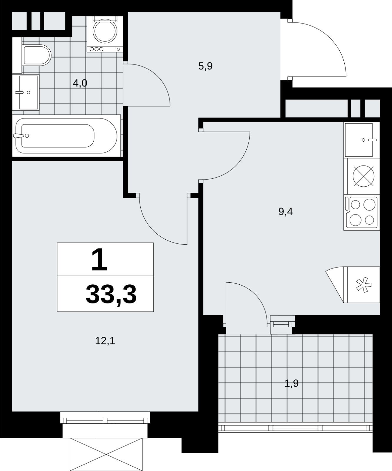 Площадь:33 м2