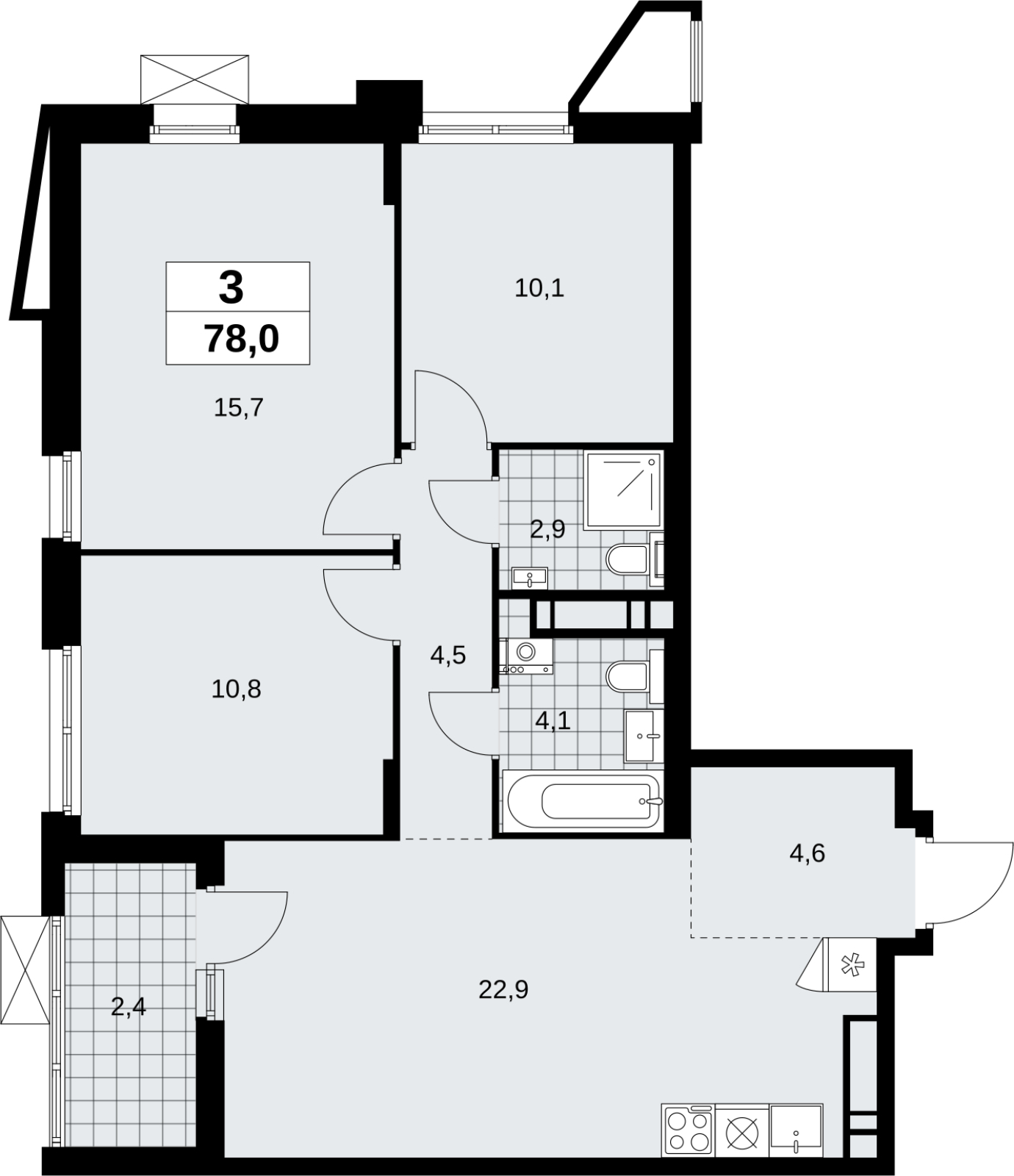 3-комнатная квартира с отделкой в новом ЖК, рядом с метро Продается трехкомнатная квартира с отделкой в ЖК "Прокшино" на 15 этаже. Общая площадь: 78 кв.м., жилая: 36.6 кв.м., площадь просторной кухни-столовой: 22.9 кв.м. Квартира угловая, очень светлая, естественная вентиляция при открытии окон. В квартире одна лоджия, два совмещенных санузла. Высота потолков 2.95 м. Квартира находится в корпусе 7.1.3. Дом монолитный, одноподъездный, высотой 17 этажей. На этаже 9 квартир. В подъезде 1 пассажирский и 1 грузовой лифт. Начало строительства - 4 квартал 2024 года. Окончание строительства - 2 квартал 2027 года. Оформление сделки по договору долевого участия. В шаговой доступности от жилого комплекса расположены станции метро (расстояние по прямой): «Прокшино» (1.4 км), «Филатов луг» (1.8 км), также недалеко от этого корпуса расположены станции метро: «Саларьево», «Румянцево», «Теплый стан». ЖК «Прокшино» расположен в 7,6 км от МКАД в Новой Москве. В 8 минутах пешком находится станция метро "Прокшино" быстрой и комфортной красной линии метро. Высокую транспортную доступность обеспечивают и два крупных шоссе, до которых легко доехать за 5 минут по новой скоростной автотрассе Солнцево – Бутово – Варшавское шоссе. Жилой комплекс "Прокшино" входит в кластер Прокшино. В районе появятся дома комфорт и бизнес-класса с подземным паркингом, закрытыми благоустроенными дворами без машин, местами для активного и созерцательного отдыха, магазинами, бытовыми сервисами и другими коммерческими объектами. Рядом пруд с собственной набережной и городской парк «Хованская дубрава». Для маленьких жителей построят детские сады, образовательный комплекс. (AQID02423180)