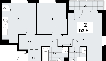 2-комнатная квартира в новостройке, у метро Двухкомнатная квартира в ЖК "Прокшино" на 7 этаже. Квартира без отделки, полностью готова к ремонту. Общая площадь: 52.9 кв.м., жилая: 24.1 кв.м., площадь просторной кухни-столовой: 11.8 кв.м. Угловая квартира, очень светлая, естественная вентиляция при открытии окон. В квартире одна лоджия, два совмещенных санузла. Высота потолков 2.95 м. Эта квартира предлагается без отделки. Будут установлены стеклопакеты с повышенной тепло- и шумоизоляцией, в квартиру заведены все коммуникации. Вы сможете в полном объеме реализовать ваши идеи обустройства вашего комфортного дома. Дом монолитный, двухподъездный, высотой 13 этажей. Квартира находится в 1-й секции в корпусе 9.1. На этаже 5 квартир. В подъезде 1 пассажирский и 1 грузовой лифт. Начало строительства - 3 квартал 2025 года. Окончание строительства - 4 квартал 2027 года. Оформление сделки по договору долевого участия. Артикул квартиры по базе застройщика 58К-9.1-21. В шаговой доступности от жилого комплекса расположены станции метро (расстояние по прямой): «Прокшино» (1.4 км), «Филатов луг» (1.8 км), также недалеко от этого корпуса находятся станции метро: «Саларьево», «Румянцево», «Теплый стан». ЖК «Прокшино» расположен в 7,6 км от МКАД в Новой Москве. В 8 минутах пешком находится станция метро "Прокшино" быстрой и комфортной красной линии метро. Высокую транспортную доступность обеспечивают и два крупных шоссе, до которых легко доехать за 5 минут по новой скоростной автотрассе Солнцево – Бутово – Варшавское шоссе. Жилой комплекс "Прокшино" входит в кластер Прокшино. В районе появятся дома комфорт и бизнес-класса с подземным паркингом, закрытыми благоустроенными дворами без машин, местами для активного и созерцательного отдыха, магазинами, бытовыми сервисами и другими коммерческими объектами. Рядом пруд с собственной набережной и городской парк «Хованская дубрава». Для маленьких жителей построят детские сады, образовательный комплекс. (AQID02508353)