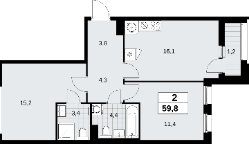 2-комнатная квартира в новом жилом комплексе, недалеко от метро Продается 2-комн. квартира в ЖК "Прокшино" на 4 этаже. Квартира без отделки, полностью готова к ремонту. Общая площадь: 59.8 кв.м., жилая: 26.6 кв.м., площадь просторной кухни-столовой: 16.1 кв.м. Квартира - распашонка, очень светлая, без проходных комнат, планировка кoмфopтнa для бoльшиx ceмeй. В квартире один балкон, два совмещенных санузла. Высота потолков 2.95 м. Эта квартира предлагается без отделки. Будут установлены стеклопакеты с повышенной тепло- и шумоизоляцией, в квартиру заведены все коммуникации. Вы сможете в полном объеме реализовать ваши идеи обустройства вашего комфортного дома. Дом монолитный, черырехподъездный, переменной этажности, от 10 до 14 этажей. Квартира находится во 2-й секции высотой 14 этажей в корпусе 9.2. На этаже 5 квартир. В подъезде 1 пассажирский и 1 грузовой лифт. Начало строительства - 3 квартал 2025 года. Окончание строительства - 4 квартал 2027 года. Оформление сделки по договору долевого участия. Артикул квартиры по базе застройщика 58К-9.2-148. В шаговой доступности от жилого комплекса расположены станции метро (расстояние по прямой): «Прокшино» (1.4 км), «Филатов луг» (1.8 км), также недалеко от этого корпуса расположены станции метро: «Саларьево», «Румянцево», «Теплый стан». ЖК «Прокшино» расположен в 7,6 км от МКАД в Новой Москве. В 8 минутах пешком находится станция метро "Прокшино" быстрой и комфортной красной линии метро. Высокую транспортную доступность обеспечивают и два крупных шоссе, до которых легко доехать за 5 минут по новой скоростной автотрассе Солнцево – Бутово – Варшавское шоссе. Жилой комплекс "Прокшино" входит в кластер Прокшино. В районе появятся дома комфорт и бизнес-класса с подземным паркингом, закрытыми благоустроенными дворами без машин, местами для активного и созерцательного отдыха, магазинами, бытовыми сервисами и другими коммерческими объектами. Рядом пруд с собственной набережной и городской парк «Хованская дубрава». Для маленьких жителей построят детские сады, образовательный комплекс. (AQID02508473)