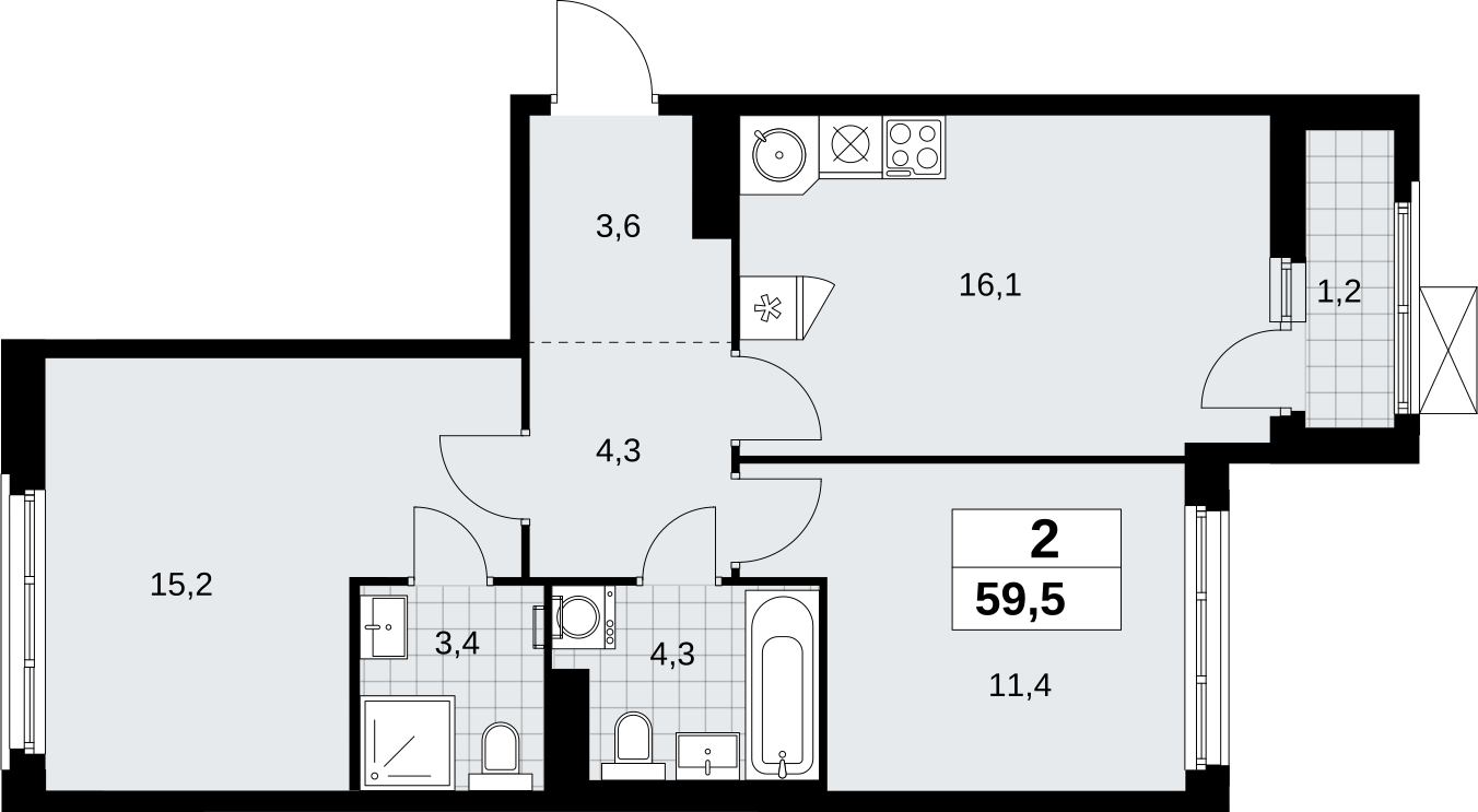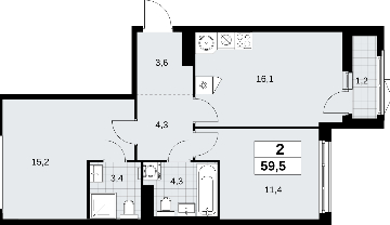 Продается двухкомнатная квартира в новом жилом комплексе, у метро Продается 2-комн. квартира от застройщика в ЖК "Прокшино" на 13 этаже. Квартира без отделки, новый владелец может сделать ремонт по своему проекту. Общая площадь: 59.5 кв.м., жилая: 26.6 кв.м., площадь просторной кухни-столовой: 16.1 кв.м. Квартира - распашонка, без проходных комнат, окна выходят на paзные стороны дома. В квартире один балкон, два совмещенных санузла. Высота потолков 2.95 м. Эта квартира предлагается без отделки. Будут установлены стеклопакеты с повышенной тепло- и шумоизоляцией, в квартиру заведены все коммуникации. Вы сможете в полном объеме реализовать ваши идеи обустройства вашего комфортного дома. Дом монолитный, черырехподъездный, переменной этажности, от 10 до 14 этажей. Квартира находится во 2-й секции высотой 14 этажей в корпусе 9.2. На этаже 5 квартир. В подъезде 1 пассажирский и 1 грузовой лифт. Начало строительства - 3 квартал 2025 года. Окончание строительства - 4 квартал 2027 года. Оформление сделки по договору долевого участия. Артикул квартиры по базе застройщика 58К-9.2-192. В шаговой доступности от жилого комплекса расположены станции метро (расстояние по прямой): «Прокшино» (1.4 км), «Филатов луг» (1.8 км), также недалеко от этого корпуса находятся станции метро: «Саларьево», «Румянцево», «Теплый стан». ЖК «Прокшино» расположен в 7,6 км от МКАД в Новой Москве. В 8 минутах пешком находится станция метро "Прокшино" быстрой и комфортной красной линии метро. Высокую транспортную доступность обеспечивают и два крупных шоссе, до которых легко доехать за 5 минут по новой скоростной автотрассе Солнцево – Бутово – Варшавское шоссе. Жилой комплекс "Прокшино" входит в кластер Прокшино. В районе появятся дома комфорт и бизнес-класса с подземным паркингом, закрытыми благоустроенными дворами без машин, местами для активного и созерцательного отдыха, магазинами, бытовыми сервисами и другими коммерческими объектами. Рядом пруд с собственной набережной и городской парк «Хованская дубрава». Для маленьких жителей построят детские сады, образовательный комплекс. (AQID02508515)