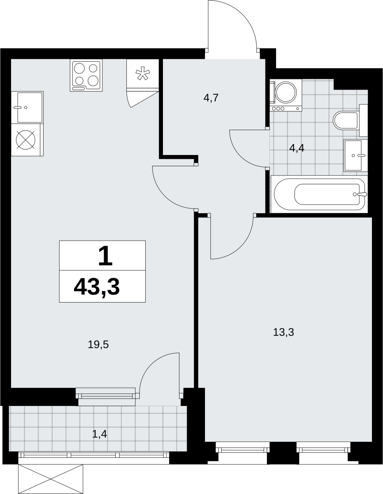 1-комнатная квартира в новом ЖК, у метро Просторная однокомнатная квартира в ЖК "Прокшино" на 2 этаже. Квартира без отделки, после выдачи ключей можно делать ремонт. Общая площадь: 43.3 кв.м., жилая: 13.3 кв.м., площадь просторной кухни-столовой: 19.5 кв.м. Все окна выходят на одну сторону. В квартире одна лоджия, один совмещенный санузел. Высота потолков 2.95 м. Эта квартира предлагается без отделки. Будут установлены стеклопакеты с повышенной тепло- и шумоизоляцией, в квартиру заведены все коммуникации. Вы сможете в полном объеме реализовать ваши идеи обустройства вашего комфортного дома. Дом монолитный, черырехподъездный, переменной этажности, от 10 до 14 этажей. Квартира находится в 4-й секции высотой 10 этажей в корпусе 9.2. На этаже 5 квартир. В подъезде 1 пассажирский и 1 грузовой лифт. Начало строительства - 3 квартал 2025 года. Окончание строительства - 4 квартал 2027 года. Оформление сделки по договору долевого участия. Артикул квартиры по базе застройщика 58К-9.2-248. В шаговой доступности от жилого комплекса имеются станции метро (расстояние по прямой): «Прокшино» (1.4 км), «Филатов луг» (1.8 км), также недалеко от этого корпуса находятся станции метро: «Саларьево», «Румянцево», «Теплый стан». ЖК «Прокшино» расположен в 7,6 км от МКАД в Новой Москве. В 8 минутах пешком находится станция метро "Прокшино" быстрой и комфортной красной линии метро. Высокую транспортную доступность обеспечивают и два крупных шоссе, до которых легко доехать за 5 минут по новой скоростной автотрассе Солнцево – Бутово – Варшавское шоссе. Жилой комплекс "Прокшино" входит в кластер Прокшино. В районе появятся дома комфорт и бизнес-класса с подземным паркингом, закрытыми благоустроенными дворами без машин, местами для активного и созерцательного отдыха, магазинами, бытовыми сервисами и другими коммерческими объектами. Рядом пруд с собственной набережной и городской парк «Хованская дубрава». Для маленьких жителей построят детские сады, образовательный комплекс. (AQID02508566)