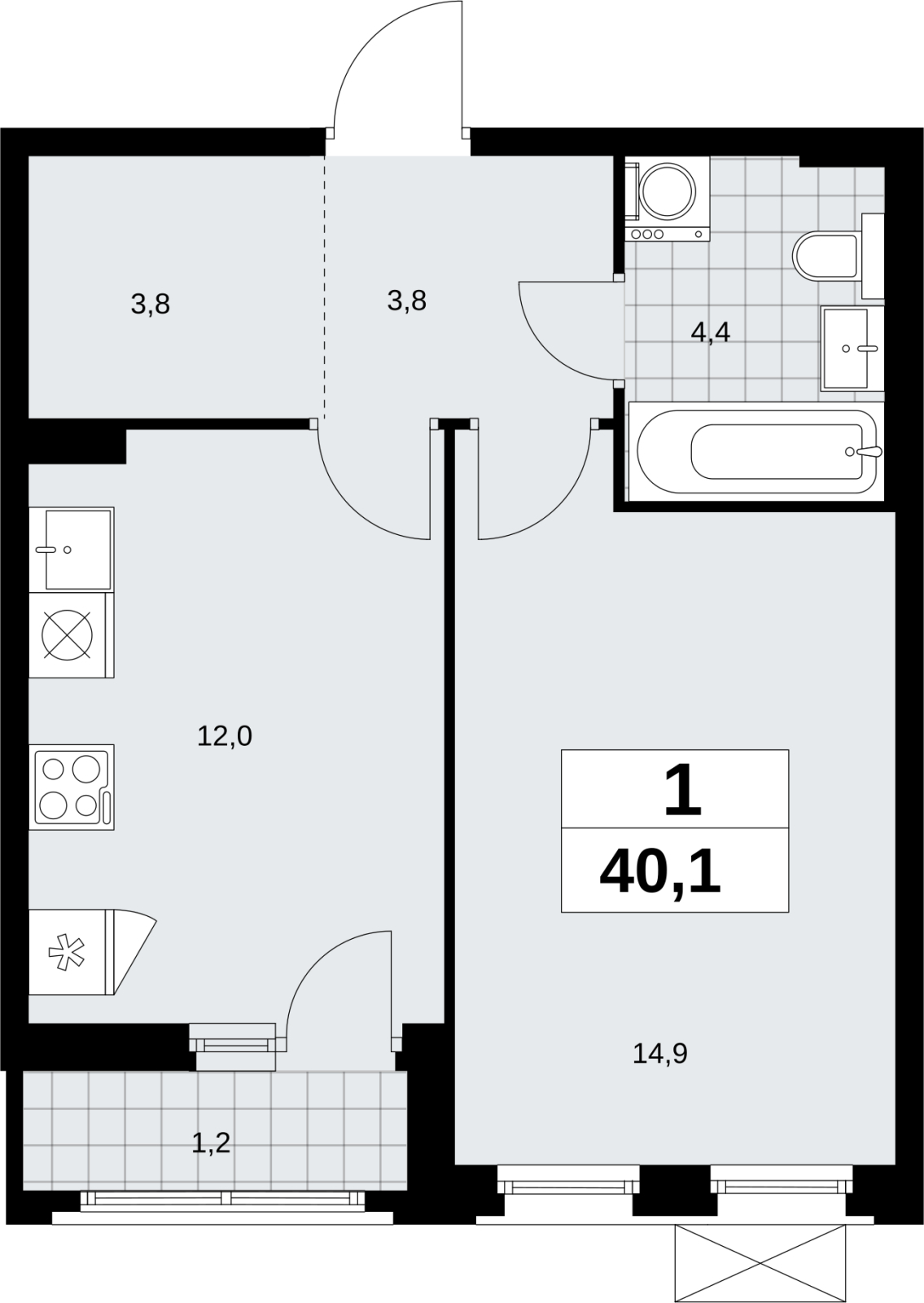 1-комнатная квартира в новостройке, недалеко от метро Продается однокомнатная квартира в ЖК "Прокшино" на 8 этаже. Квартира без отделки, новый собственник может сделать ремонт по своему проекту. Общая площадь: 40.1 кв.м., жилая: 14.9 кв.м., площадь просторной кухни-столовой: 12 кв.м. Все окна выходят на одну сторону. В квартире одна лоджия, один совмещенный санузел. Высота потолков 2.95 м. Эта квартира предлагается без отделки. Будут установлены стеклопакеты с повышенной тепло- и шумоизоляцией, в квартиру заведены все коммуникации. Вы сможете в полном объеме реализовать ваши идеи обустройства вашего комфортного дома. Имеется ниша под гардероб. Дом монолитный, черырехподъездный, переменной этажности, от 10 до 14 этажей. Квартира находится в 4-й секции высотой 10 этажей в корпусе 9.2. На этаже 5 квартир. В подъезде 1 пассажирский и 1 грузовой лифт. Начало строительства - 3 квартал 2025 года. Окончание строительства - 4 квартал 2027 года. Оформление сделки по договору долевого участия. Артикул квартиры по базе застройщика 58К-9.2-276. В шаговой доступности от жилого комплекса расположены станции метро (расстояние по прямой): «Прокшино» (1.4 км), «Филатов луг» (1.8 км), также недалеко от этого корпуса расположены станции метро: «Саларьево», «Румянцево», «Теплый стан». ЖК «Прокшино» расположен в 7,6 км от МКАД в Новой Москве. В 8 минутах пешком находится станция метро "Прокшино" быстрой и комфортной красной линии метро. Высокую транспортную доступность обеспечивают и два крупных шоссе, до которых легко доехать за 5 минут по новой скоростной автотрассе Солнцево – Бутово – Варшавское шоссе. Жилой комплекс "Прокшино" входит в кластер Прокшино. В районе появятся дома комфорт и бизнес-класса с подземным паркингом, закрытыми благоустроенными дворами без машин, местами для активного и созерцательного отдыха, магазинами, бытовыми сервисами и другими коммерческими объектами. Рядом пруд с собственной набережной и городской парк «Хованская дубрава». Для маленьких жителей построят детские сады, образовательный комплекс. (AQID02508594)